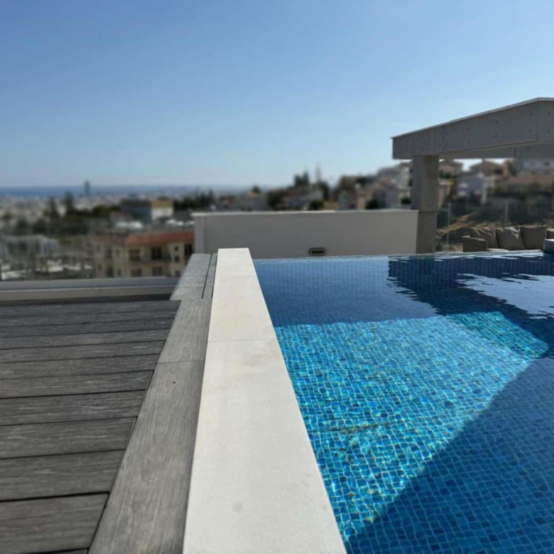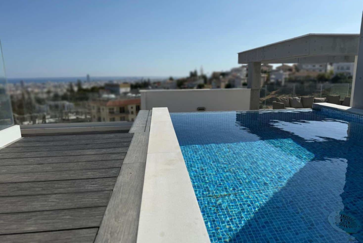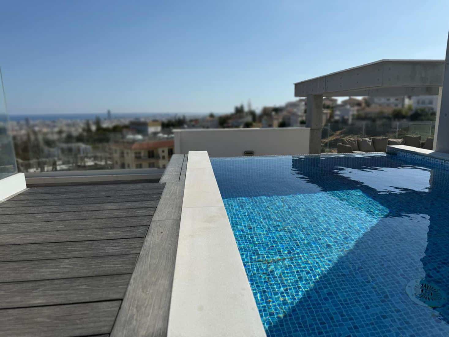 This elegant whole floor penthouse in Ayios Athanasios offers stunning sea and city views with complete privacy. It features three spacious bedrooms, three modern bathrooms, and a bright open plan living area with a fully equipped kitchen. Large wrap around verandas provide generous outdoor space. The penthouse includes private elevator access, covered parking, and storage. Located in a quiet area with easy access to the highway, city center, schools, and amenities.