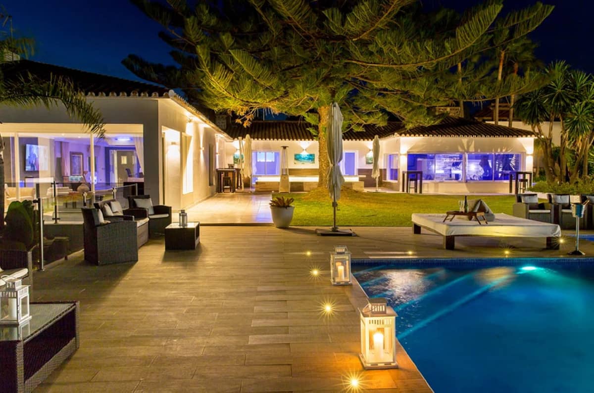 We proudly present for sale this beautiful villa in Elviria. Built on a 2506m2 plot with stunning, panoramic views across the Mediterranean Sea, on a clear day you can even see Gibraltar and Morocco on the North African coastline! Offering fantastic facilities, including a newly installed infinity pool with a 10 seater jacuzzi, poolside bar, an outdoor eating area and state of the art outdoor lighting. Lush gardens give way to a spacious sun terrace with sumptuous Bali-style beds for soaking up the sun in style. The interior of this luxury home is decorated and furnished to the very highest standards, the spacious, bright and airy living space gives a feeling of cool, calm and luxury with some quirky extras, including a day bed, fireplace and a bar. Large, comfortable sofas and satellite TV make the living space a great place to chill out. There is also a fully equipped modern kitchen and dining area, a games room with pool table and a gym is a particular highlight of this property, making it ideal for families. There are eight Versace themed bedrooms and luxurious en-suite bathrooms with hot tub, bath and shower that offer the utmost in comfort and luxury. Spacious and elegant, the en-suite bedrooms were designed with indulgence in mind and provide a perfect place to recharge your batteries and relax after a hard day sunbathing. The buzzing towns of Marbella, Puerto Banus and La Cala are just a short drive away whilst there are also a variety of bars and restaurants close by. The property is currently run as a successful business, not just for holiday rentals but also for prestigious events, weddings and pool parties, there is the perfect opportunity here to carry on this successful business or adapt to run as a luxury and boutique guest house or simply be enjoyed as a magnificent family home. A stunning property that must be seen! Experience Exceptional Service Only With Us When Purchasing Your Marbella Home. We offer our clients an unrivaled service, from first contact to moving into your new home in the sun, we will be with you on your journey all the way. Our aim is to exceed all expectations delivering excellent service, up to date real time property listings, and a customer experience that is unrivaled in the real estate industry. We have access to the best lawyers, most competitive mortgage solutions and the best money exchange rates available. Put your trust in us to deliver an informative, caring, no hidden cost solution that will help to make your purchase in the sun stress free, easy and enjoyable. House for sale in Elviria Property ID: AVH-R4727215 Price: €3,500,000 Property Size: 1054 m2 Land Area: 2506 m2 Bedrooms: 8 Bathrooms: 8 Property Type: Villa Property Status: For Sale
