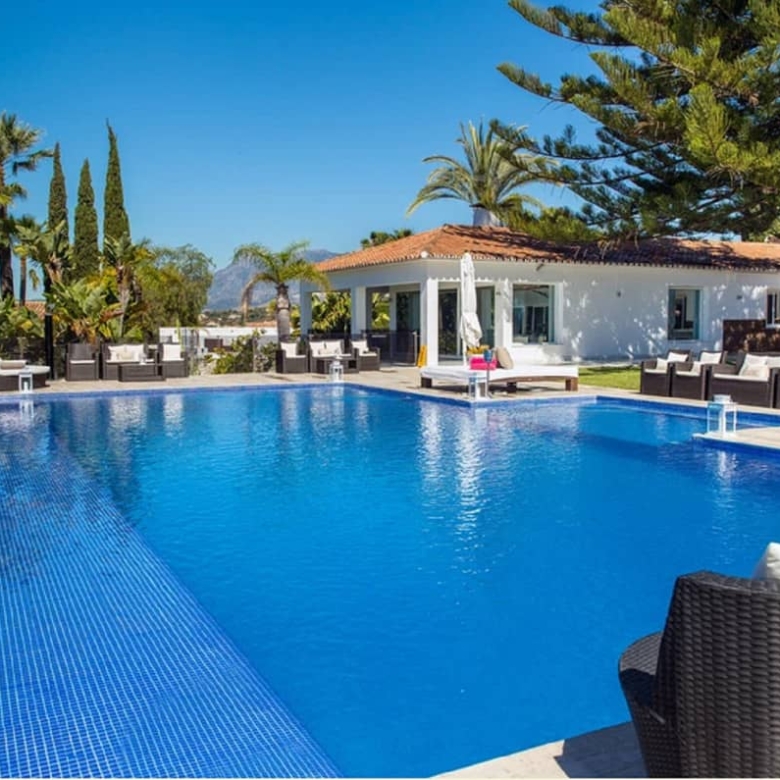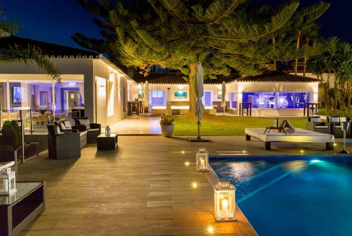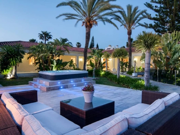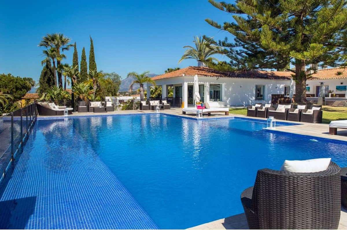 We proudly present for sale this beautiful villa in Elviria. Built on a 2506m2 plot with stunning, panoramic views across the Mediterranean Sea, on a clear day you can even see Gibraltar and Morocco on the North African coastline! Offering fantastic facilities, including a newly installed infinity pool with a 10 seater jacuzzi, poolside bar, an outdoor eating area and state of the art outdoor lighting. Lush gardens give way to a spacious sun terrace with sumptuous Bali-style beds for soaking up the sun in style. The interior of this luxury home is decorated and furnished to the very highest standards, the spacious, bright and airy living space gives a feeling of cool, calm and luxury with some quirky extras, including a day bed, fireplace and a bar. Large, comfortable sofas and satellite TV make the living space a great place to chill out. There is also a fully equipped modern kitchen and dining area, a games room with pool table and a gym is a particular highlight of this property, making it ideal for families. There are eight Versace themed bedrooms and luxurious en-suite bathrooms with hot tub, bath and shower that offer the utmost in comfort and luxury. Spacious and elegant, the en-suite bedrooms were designed with indulgence in mind and provide a perfect place to recharge your batteries and relax after a hard day sunbathing. The buzzing towns of Marbella, Puerto Banus and La Cala are just a short drive away whilst there are also a variety of bars and restaurants close by. The property is currently run as a successful business, not just for holiday rentals but also for prestigious events, weddings and pool parties, there is the perfect opportunity here to carry on this successful business or adapt to run as a luxury and boutique guest house or simply be enjoyed as a magnificent family home. A stunning property that must be seen! Experience Exceptional Service Only With Us When Purchasing Your Marbella Home. We offer our clients an unrivaled service, from first contact to moving into your new home in the sun, we will be with you on your journey all the way. Our aim is to exceed all expectations delivering excellent service, up to date real time property listings, and a customer experience that is unrivaled in the real estate industry. We have access to the best lawyers, most competitive mortgage solutions and the best money exchange rates available. Put your trust in us to deliver an informative, caring, no hidden cost solution that will help to make your purchase in the sun stress free, easy and enjoyable. House for sale in Elviria Property ID: AVH-R4727215 Price: €3,500,000 Property Size: 1054 m2 Land Area: 2506 m2 Bedrooms: 8 Bathrooms: 8 Property Type: Villa Property Status: For Sale