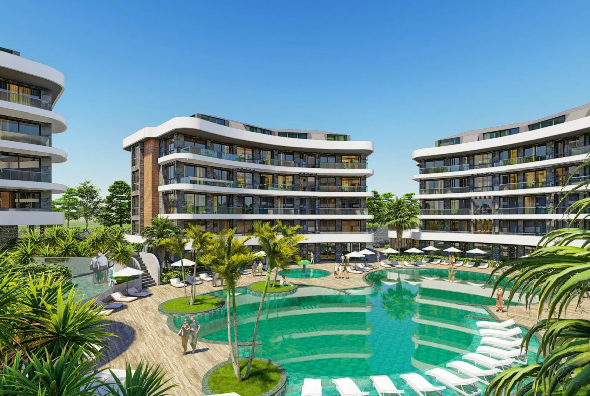 Located in the vibrant and well-developed Oba district, the project offers an unparalleled living experience just 1400 meters from the sparkling Mediterranean Sea. This exquisite residential complex spans a generous 8000 m² and consists of five 5-story buildings featuring apartments ranging from cozy 57 m² units to spacious 175 m² residences, designed to cater to all your lifestyle needs.Main Features:- Stunning sea views from most windows- Modern apartments with smart home systems and underfloor heating- Various apartment sizes: 1+1 (57-60 m²), 2+1 (93-115 m²), 3+1 (125 m²), 4+1 (175 m²), and 5+1 (173 m²)- Comprehensive social areas including a pool, sauna, steam room, hammam, and jacuzzi- Family-friendly BBQ zone and lush gardens with gazebos- Fitness facilities, table tennis, and billiards for active recreation- Secure environment with 24/7 security, concierge services, and video surveillance- Convenient indoor and outdoor parking spaces- Elegant lobbies and elevators in each buildingWhat sets this property apart is its perfect blend of luxury and convenience. Residents can enjoy a swim in the pool, unwind in the sauna, or host gatherings in the BBQ area. The nearby parks and squares add to the charm, making it an ideal location for both relaxation and active recreation. The advanced infrastructure and smart home features ensure a comfortable and secure living experience, making this property a must-have.Don’t miss the opportunity to own a piece of this paradise. Contact us today to learn more and secure your dream home by the sea. Experience the ultimate in beachside living—act now and embrace a lifestyle of elegance and convenience.
