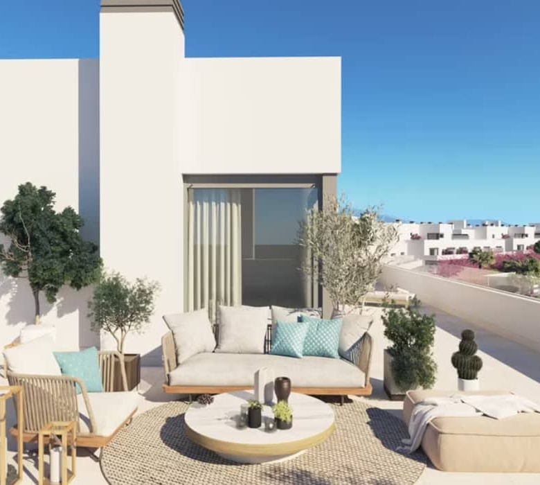 2 Bedroom Apartment: Price 391,500 €. [Beds: 2] [Baths: 2] [Built size: 97.00 m2] So Central and yet so Private On your doorstep, this development is located on the New Golden Mile – the coastal area that lies between Estepona and San Pedro Alcantara. A convenient and desirable location, close to everything you could wish for, from sports and beaches to practical amenities such as schools, supermarkets, shopping, dining and entertainment. You are located just a few minutes’ drive of six golf courses, as well as a great choice of other sports, leisure and practical amenities, not to mention beaches, the bustling town of San Pedro, beachside charm of Estepona, the glamour of Puerto Banus and Marbella town and the undeniable rustic appeal of Benahavis. The development lies close to Cancelada, your local village, with its shops, cafes and eateries, as well as conveniences such as a post office and banks – and beyond are the valleys and hills of open, unspoiled countryside, perfect for hiking, mountain biking and cross-country buggy rides. There is a world of experiences at your fingertips, and this development is the ideal spot from which to enjoy them – a centrally located oasis of personal greenery where you can enjoy the ultimate Marbella lifestyle to the full. Modern Design on the New Golden Mile Stylish and contemporary development of 95 apartments and penthouses, located in a convenient and central location on the New Golden Mile. Whether you are looking for the perfect holiday home or perhaps a new permanent residence you will be spoilt for choice with the vast array of amenities on your doorstep. The New Golden Mile offers everything from golf courses and beaches to schools, entertainment, shopping and dining. A sleek architectural design combined with open-plan interiors and modern amenities creates one of the most attractive new-build offerings on the market today, no stone has been left unturned in the design of Acqua Gardens to create the perfect oasis for modern day living. Some of the details that have been meticulously thought of include top quality finishes, spacious interiors and terraces with sea and mountain views. In addition, the community and communal areas have also been meticulously designed, some of the features on offer include; a secure entrance, private parking and storage, large landscaped gardens, a stylish pool deck and a professionally equipped gymnasium and working/meeting area complete with cafe. Apartments & Penthouses The aesthetically appealing low-rise apartment buildings that make up this development offer a variety of sizes, orientations and configurations that ensure every home has a unique and personal feel. Within these main property types there is a choice of sizes and layouts that further increases the range of options and the ability to cater to different tastes and needs – there are also standard and bespoke updates that enable you to personalise your home. Personalised detailing This development offers a high standard of modern kitchens, bathrooms, cabinetry and technical installations, along with your choice from a range of textures, materials and colour tones. There is also a list of optional features such as modern gas fireplaces, kitchen upgrades and penthouse jacuzzis. Full utilisation of the latest technical infrastructure and amenities to maximise performance and energy-efficiency has been at the forefront in the development these homes, which not only results in more environmentally friendly homes, but also a top energy certification and low utility and maintenance costs. A high standard of build quality combines with striking contemporary architectural styling and fresh open-plan interiors which extend and subsequently merge in to the spacious terraces with views of the gardens, mountains and the nearby sea. A Lifestyle Community It has been designed to provide a private setting and sense of community, with properties overlooking the beautifully manicured landscaped gardens, filled with colour and shaded areas and far reaching views of both mountains and the sea. Las instalaciones * Private and secure access * Private covered parking * Individual storage rooms * Community paths with attractive design * Large garden areas * Swimming pool and solarium area * Professional gymnasium * Meeting space with Wi-Fi Secure gated entrances offer peace of mind for residents, with private underground parking and spacious storage rooms for each property. The level of finishing in all communal areas is modern and attractive throughout. The lush greenery of the extensive gardens are a characteristic feature of this development, ,a private oasis within a few hundred metres of the sea, but at the heart of the community is a large swimming pool with expansive private sunbathing deck. Other features found in this high-end residential complex include a professional fitted gymnasium with changing room facilities and natural light and views to inspire your workout. The community even features its own co-working and meeting area with a cafe bar and terraced space. B energy rating (emissions) The building has a B energy rating in emissions, meaning a reduction in CO2 emissions and a significant reduction in the building’s energy demand. This rating is achieved by adopting an improved building envelope (thermal insulation on the facades, improvements on the roof, and efficient carpentry and glass) and high-efficiency thermal installations. This rating equates to an anticipated 70% energy savings and hence to significant economic savings as compared to a house with a F energy rating. Experience Exceptional Service Only With Us When Purchasing Your Marbella Home. We offer our clients an unrivaled service, from first contact to moving into your new home in the sun, we will be with you on your journey all the way. Our aim is to exceed all expectations delivering excellent service, up to date real time property listings, and a customer experience that i