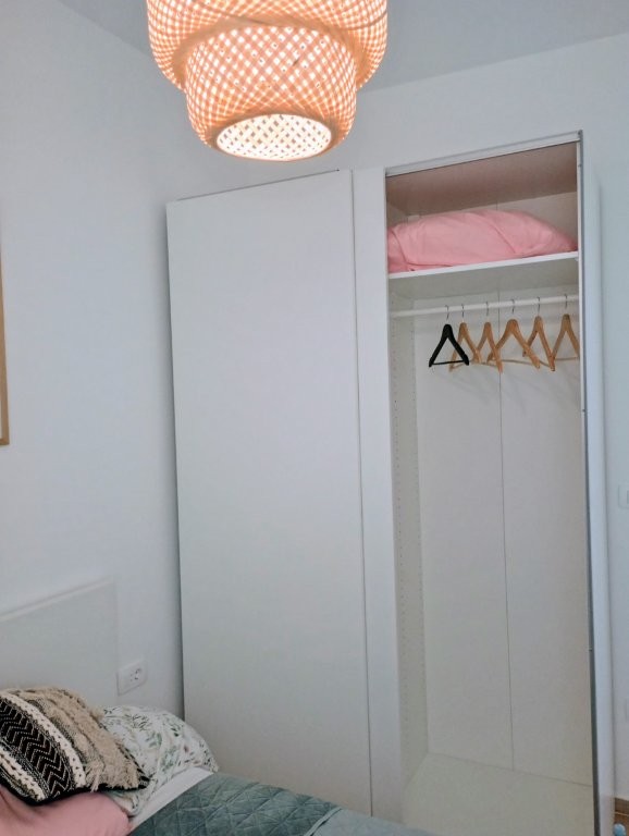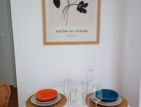 The apartment’s south-west orientation bathes the interior in natural light, enhanced by tall, stylish windows and elegant window dressings. The balcony, a private outdoor space, offers partial yet generous views of the shimmering sea and the majestic mountains, creating a picturesque backdrop for daily living.