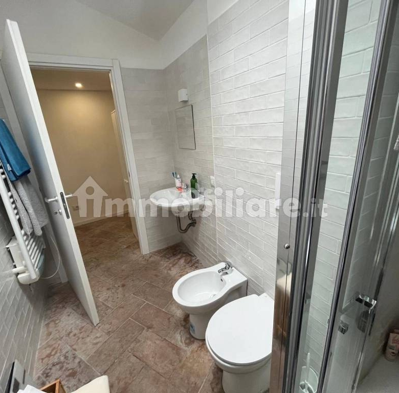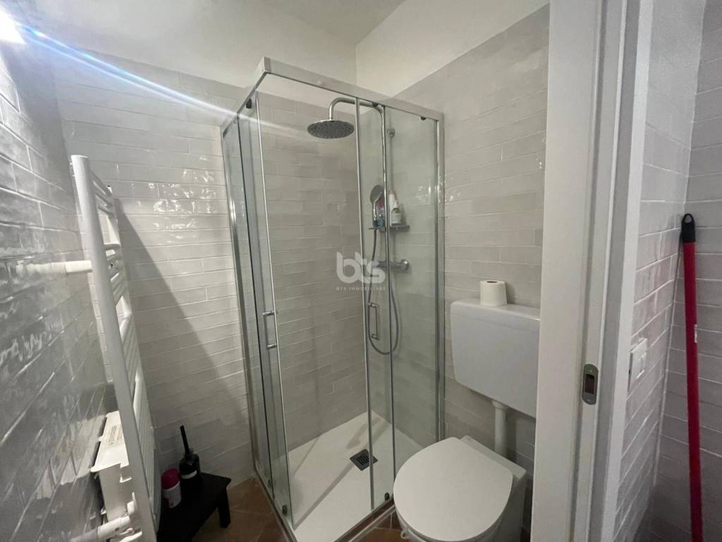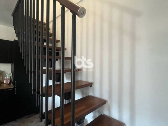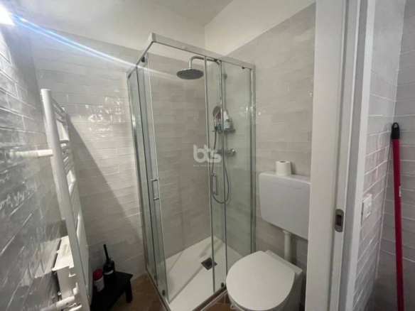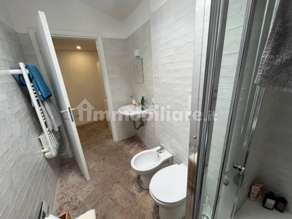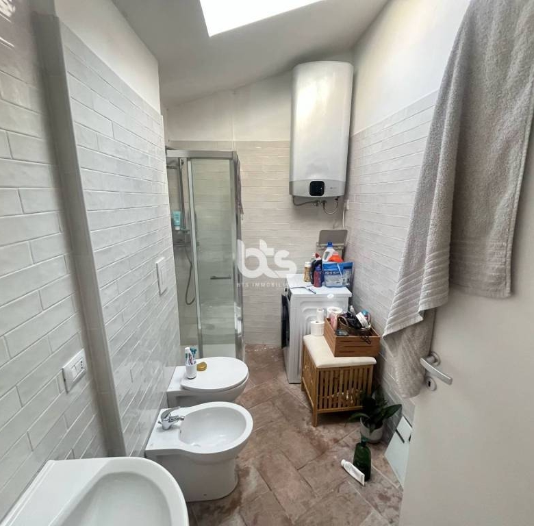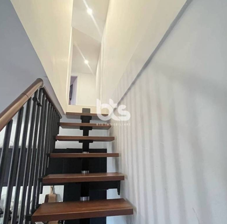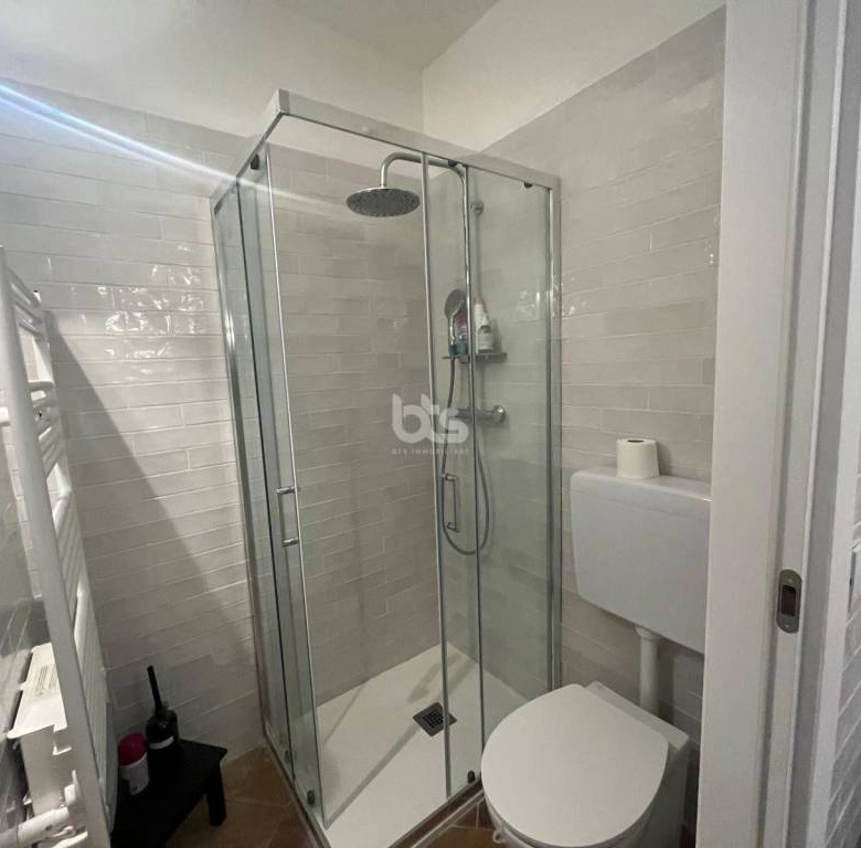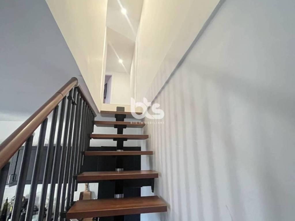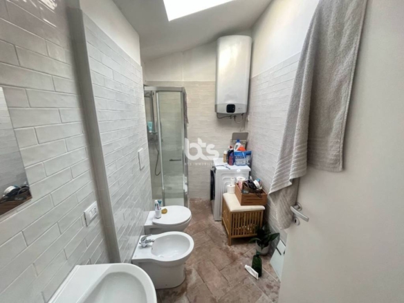 The upper-level bathroom is equally impressive, featuring a window for natural light and ventilation, along with a finely finished shower equipped with every comfort. The attention to detail in the bathroom reflects the overall commitment to quality found throughout the apartment.