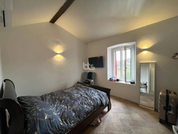 An elegant staircase serves as a beautiful architectural feature, leading you seamlessly to the sleeping area on the upper level. This private retreat consists of two large double bedrooms, each designed to offer comfort and tranquility. One of these bedrooms presents an exciting opportunity: given its high ceilings, there is the possibility of creating a mezzanine, adding valuable extra space that could serve as an additional sleeping area, a quiet reading nook, or a dedicated home office. This bedroom also benefits from an external vent offering splendid views of the surrounding landscape, allowing you to wake up to picturesque vistas and enjoy fresh air.