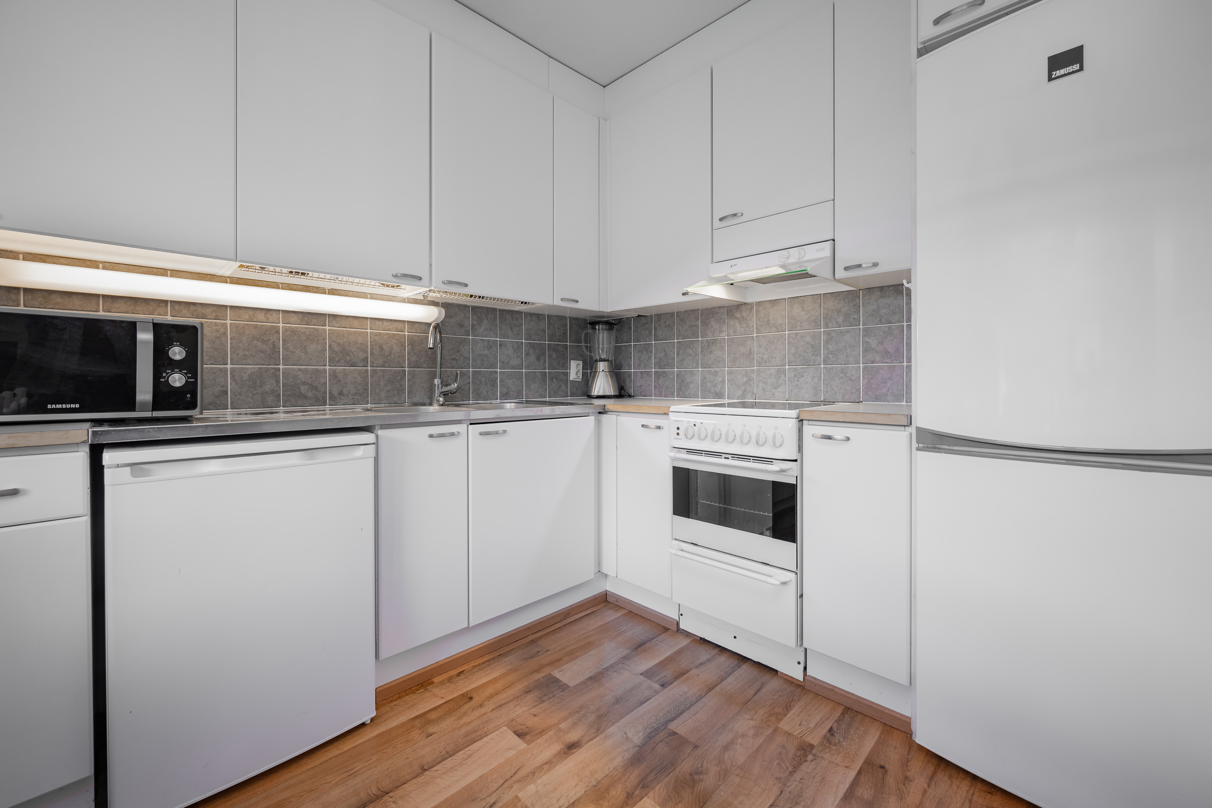 * Turnkey Inclusions: The sale includes a fully functional shower cabin (installed 2020), a very clean fridge-freezer combination, a large, new-like mirror cabinet in the living room, and a very handy lawnmower (though a battery-powered push-button lawnmower can be conveniently borrowed from the housing company).