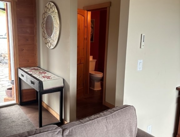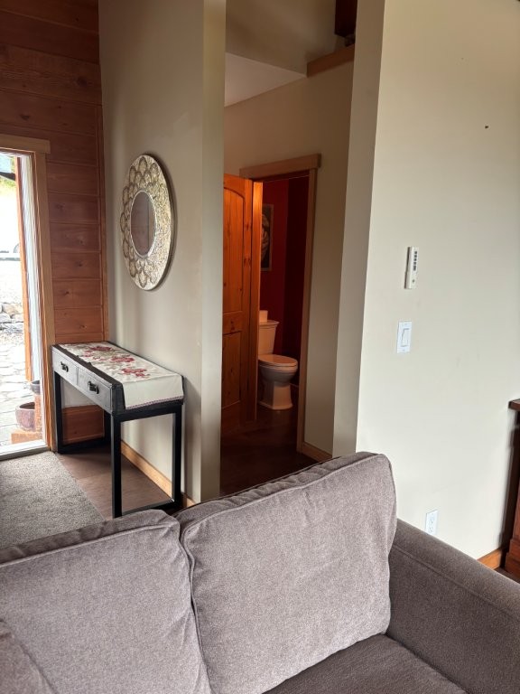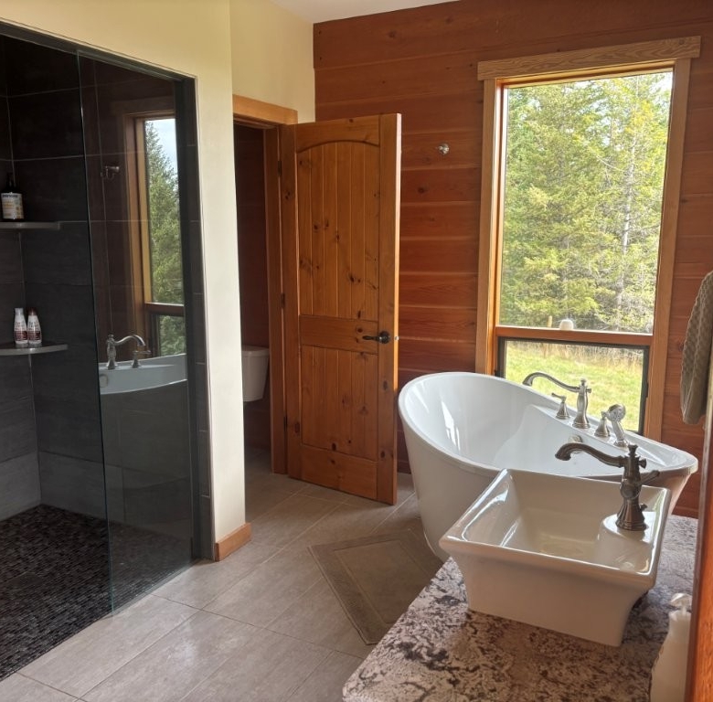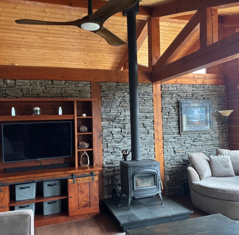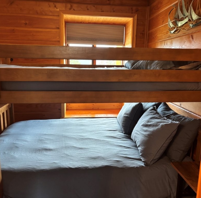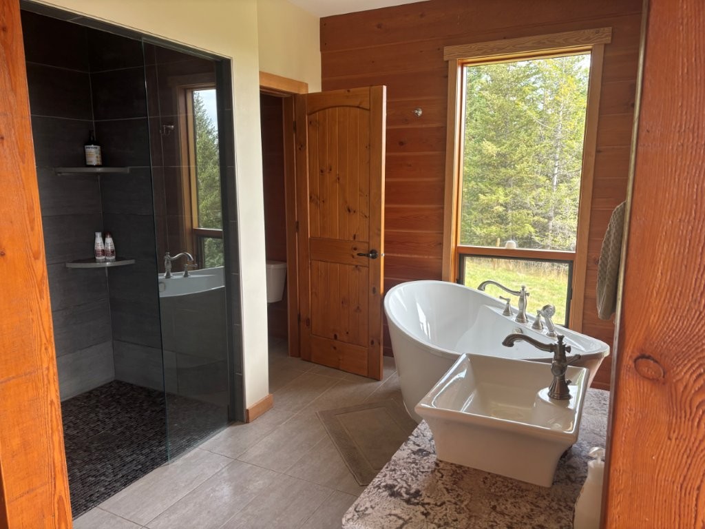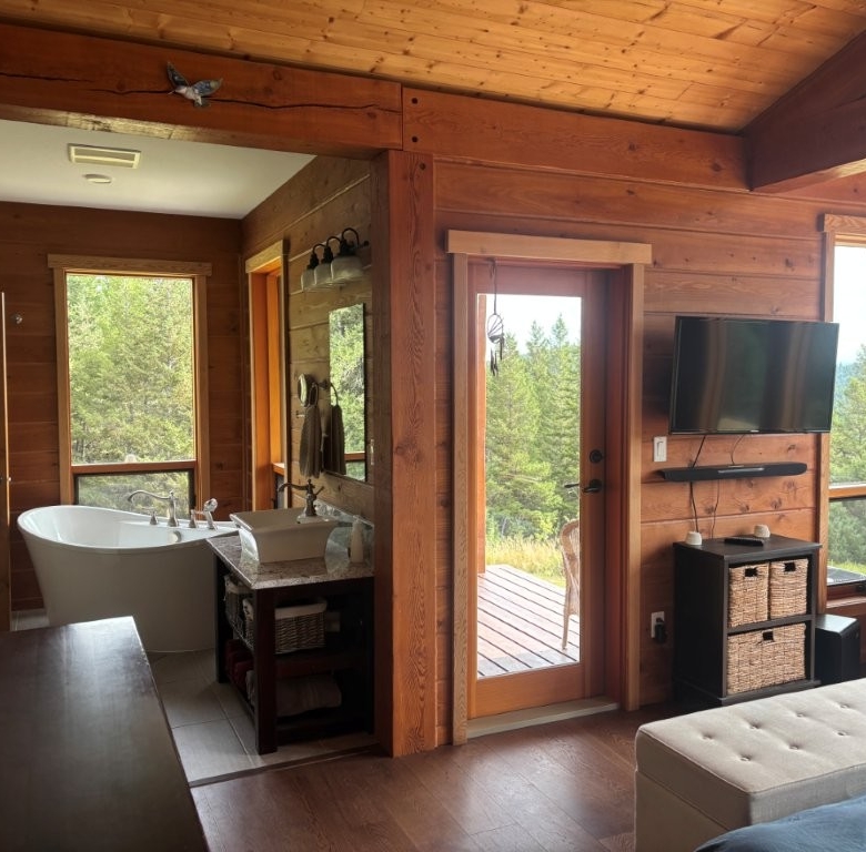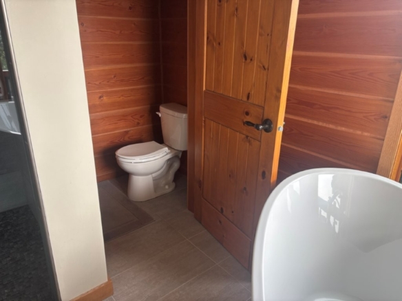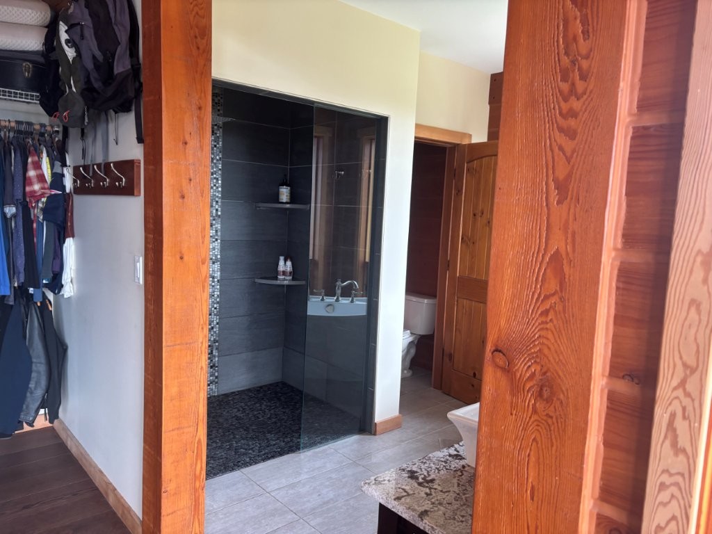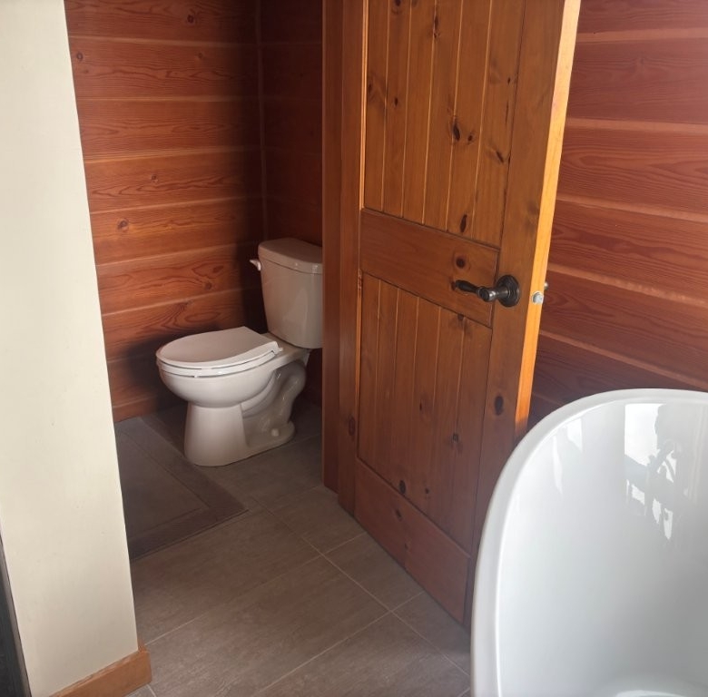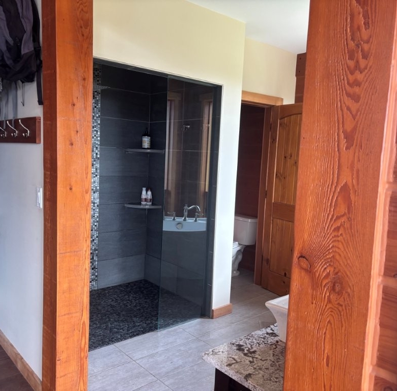 The main residence is a magnificent 1,400-square-foot timber-frame house that perfectly blends rustic elegance with contemporary comfort. The open-plan design and use of natural materials create a warm and inviting atmosphere, where the beauty of the surrounding forest and the natural landscape is brought indoors. The house is a spacious two-bedroom, three-bathroom home, offering a high degree of comfort and privacy for a family or couple. The bedrooms are designed as cozy retreats, while the three full bathrooms ensure that daily routines are effortless and efficient for residents and guests alike.