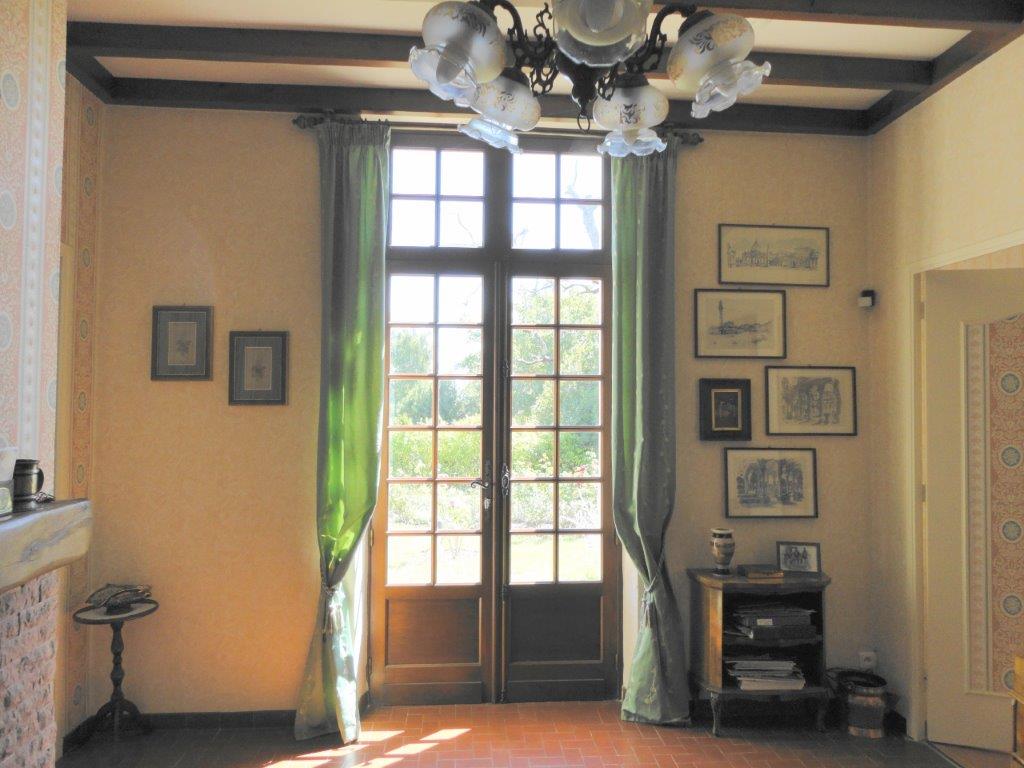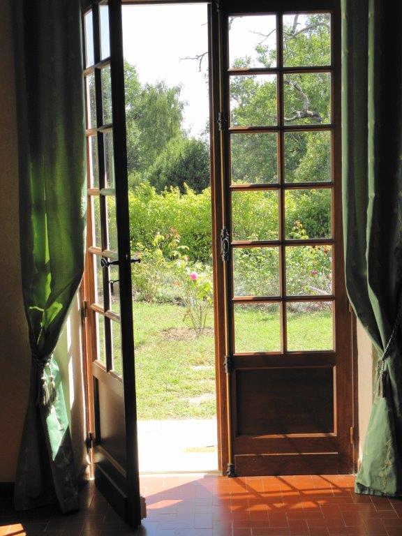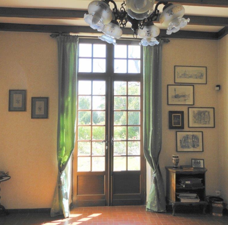The kitchen is 4.60 x 3.30 m, featuring a beautiful Girondine stone fireplace (now housing a cast-iron log burner) and equipped with large fridge, cooking gas hob, and electric wall-mounted oven. Generous storage is provided by oak fitted cabinets. Just off the kitchen, there is a glassed-in veranda. This is the main entrance into the house. The living/dining room (32 sq. m.) opens onto a paved terrace. Throughout the house the floors are tiled for hygiene and ease of maintenance.