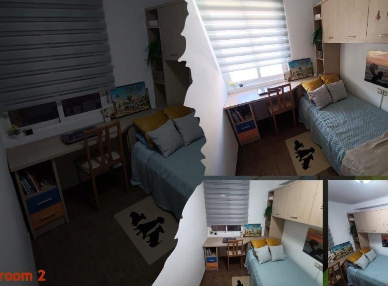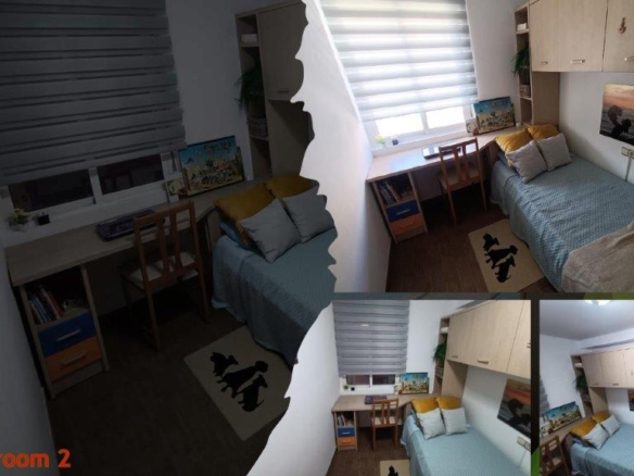 * Spacious Layout: The property features two bedrooms on the first floor, including a master bedroom with air conditioning and a fully furnished children’s bedroom. A versatile multipurpose room on the second floor can be used as an additional bedroom, providing flexibility for your needs.