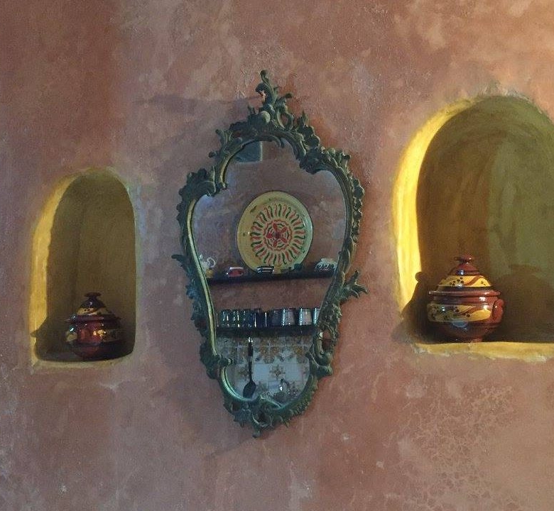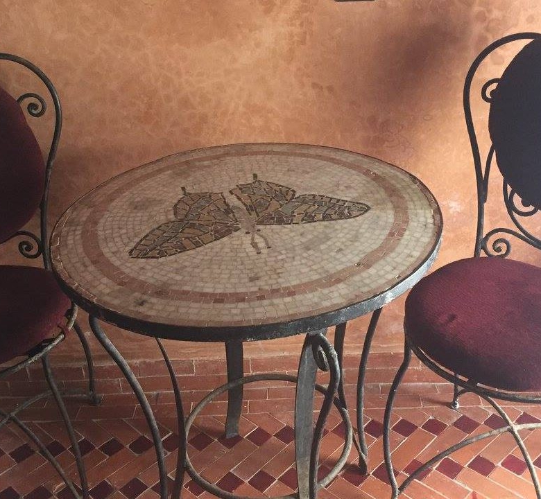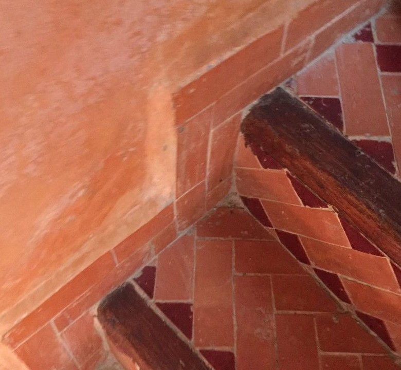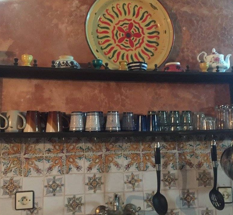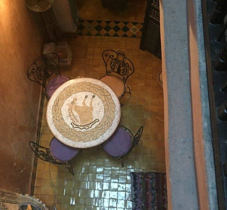 The Little House has a glass covered central atruim (in the traditional style). Around 150 years old, it has been lovingly restored by local craftsmen using natural materials, with many original rustic features. Thuja wood ceilings and attractively coloured tadelakt walls give a truly cosy and authentic atmosphere. Ground floor – living room and kitchen/diner. WC. Tiled staircase to first floor – Moroccan style double bedroom and courtyard with dining or work area with Juliette balcony. Second floor – Double bedroom and bathroom, with shower, sink and WC. Third floor – roof terrace including lounge room. Terrace with view of the Marrakesh hills. The house has wifi.
