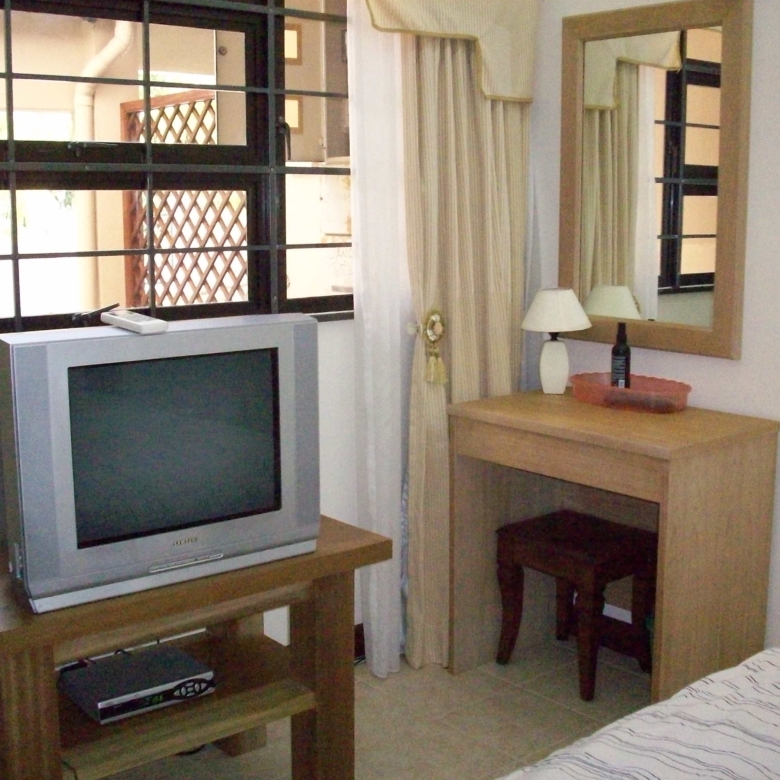 First floor Living Room leading to balcony overlooking pool, 2 x Double Bedrooms with ensuite shower rooms and 1 x twin room with ensuite shower room. All rooms have air con and are fully furnished.