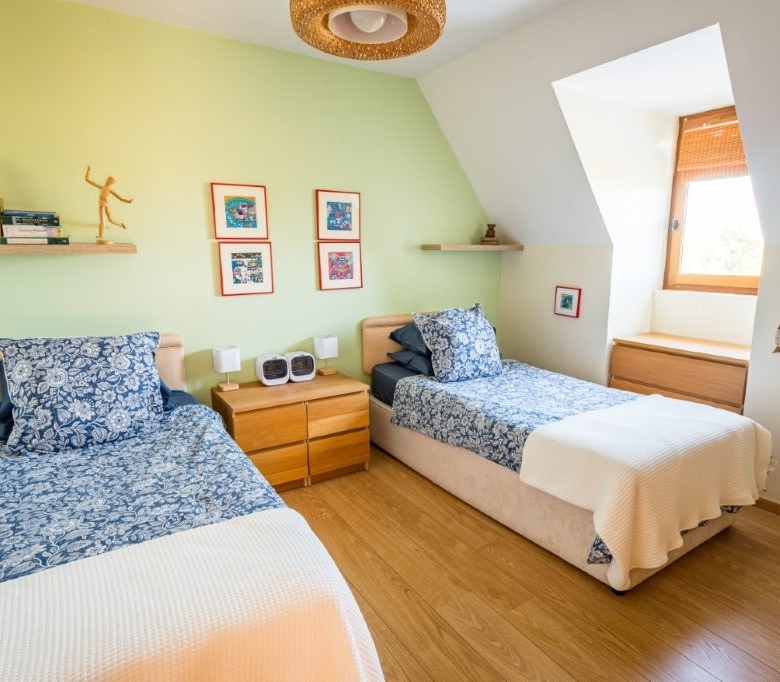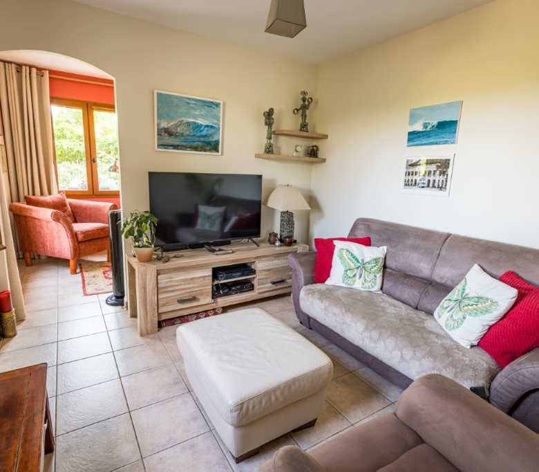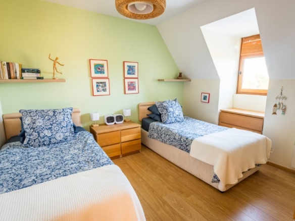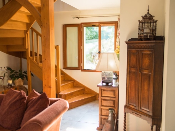 Further away from the main house, an area has been thoughtfully developed as a small potager (vegetable garden), allowing for the cultivation of fresh produce, and a practical wood storage area, ensuring a ready supply for the efficient wood stove that supplements the modern electric underfloor heating system throughout the house, providing both warmth and a cozy ambiance during the cooler months.