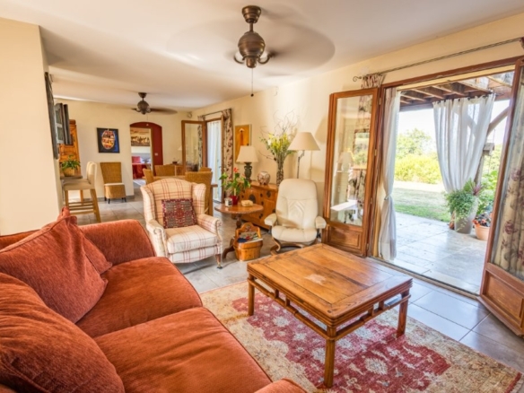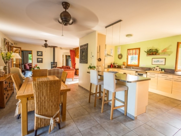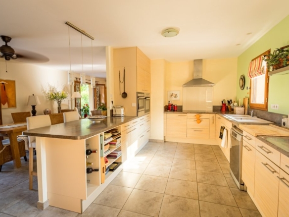 Step inside and be immediately captivated by the well-proportioned and light-filled living spaces on the ground floor. Thoughtfully laid out to encourage a seamless flow, these areas are designed for both relaxed everyday living and elegant entertaining. Two sets of French windows serve as elegant portals, opening onto the magnificent southeast-facing terrace, a sprawling 55 square meters of sun-drenched stone, perfectly positioned to capture the breathtaking panoramic views of the unspoilt rolling countryside that stretches as far as the eye can see.