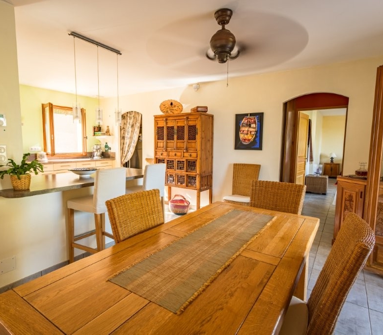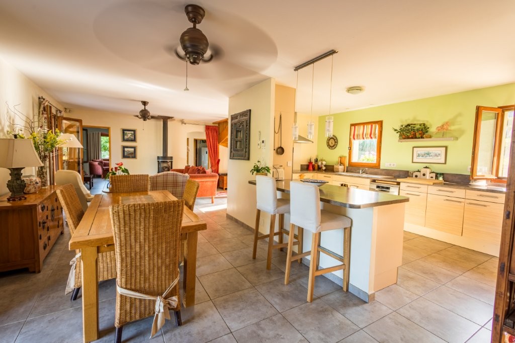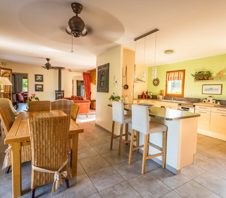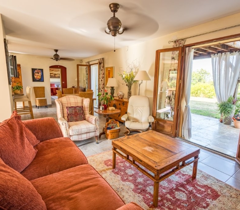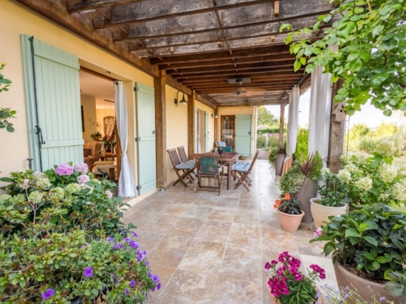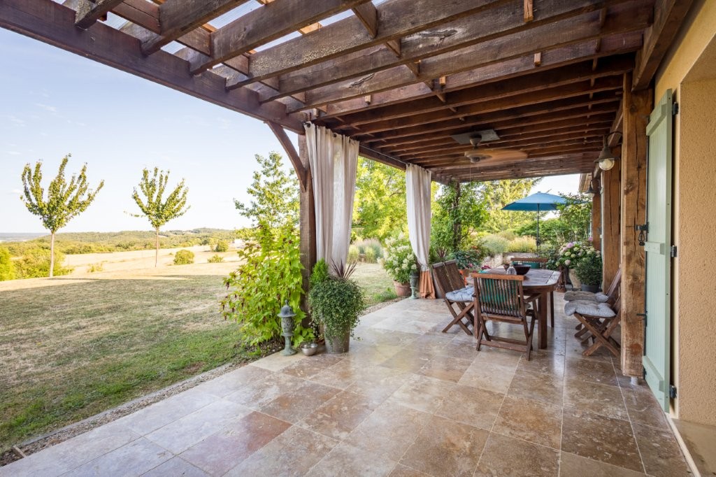 The design ethos of this Francoulès residence prioritizes both aesthetic appeal and practical functionality. Constructed to modern building standards, the house offers the peace of mind of contemporary insulation, efficient heating, and quality finishes, all while gracefully embodying the character and charm of the traditional Quercy style, with its distinctive stone accents and harmonious integration with the surrounding landscape.