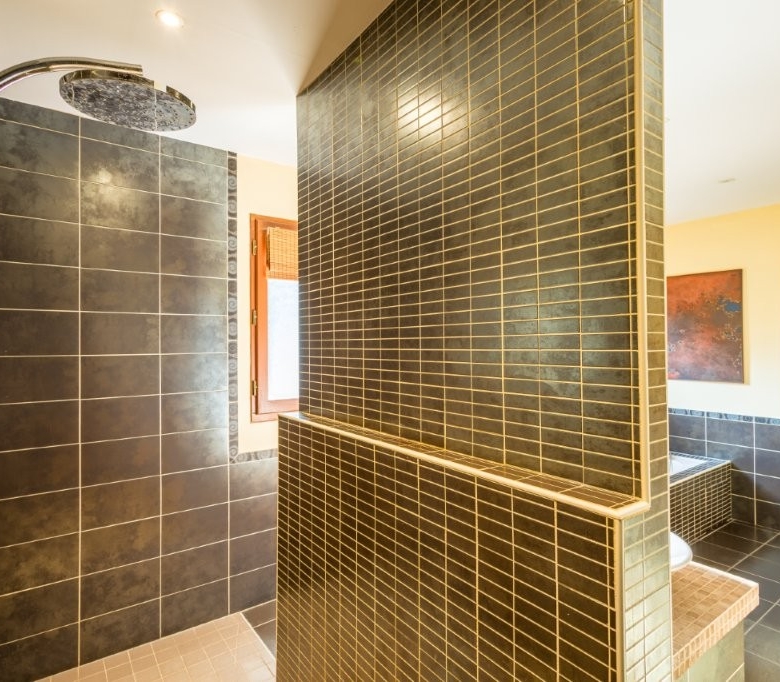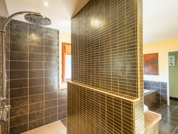 The ground floor also boasts a truly luxurious main bedroom suite, a sprawling 65 square meter sanctuary designed for ultimate comfort and privacy. This impressive space opens directly onto the garden terrace, seamlessly connecting the indoors with the beauty of the outdoors. The suite comprises a generously sized bedroom, two dedicated dressing rooms providing ample storage and organization, and a large, beautifully appointed bathroom featuring a separate wetroom-style shower and a separate toilet, ensuring a spa-like experience within the comfort of your own home.