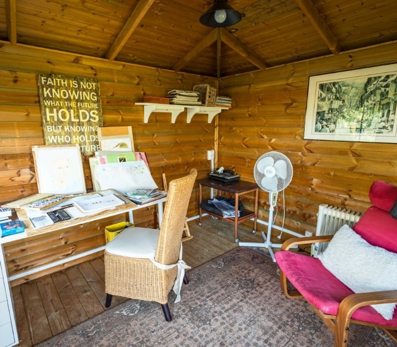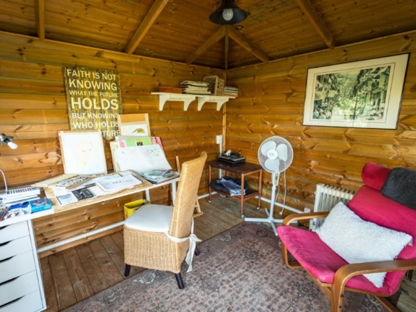 Adding to the versatility of the property is a charming summerhouse located within the grounds. This delightful structure has served as a tranquil studio for painting and hobbies, providing a light-filled and inspiring space for artistic expression. However, its potential extends beyond creative pursuits; the summerhouse could also serve as an additional, secluded office, offering a pleasant and productive alternative or supplement to the main house’s study. Imagine the inspiration drawn from working amidst the beauty of the garden, with natural light streaming in and the gentle sounds of nature providing a soothing ambiance.