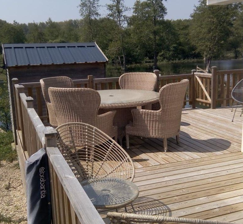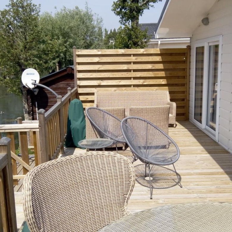 A particularly unique and desirable feature of this lodge is its own private fishing deck, extending from the side decking and overlooking one of the lakes. This offers the perfect opportunity for fishing enthusiasts to indulge in their hobby in complete privacy and convenience, right from their own property.