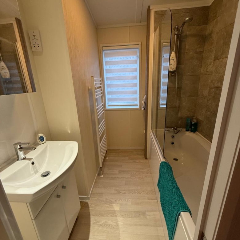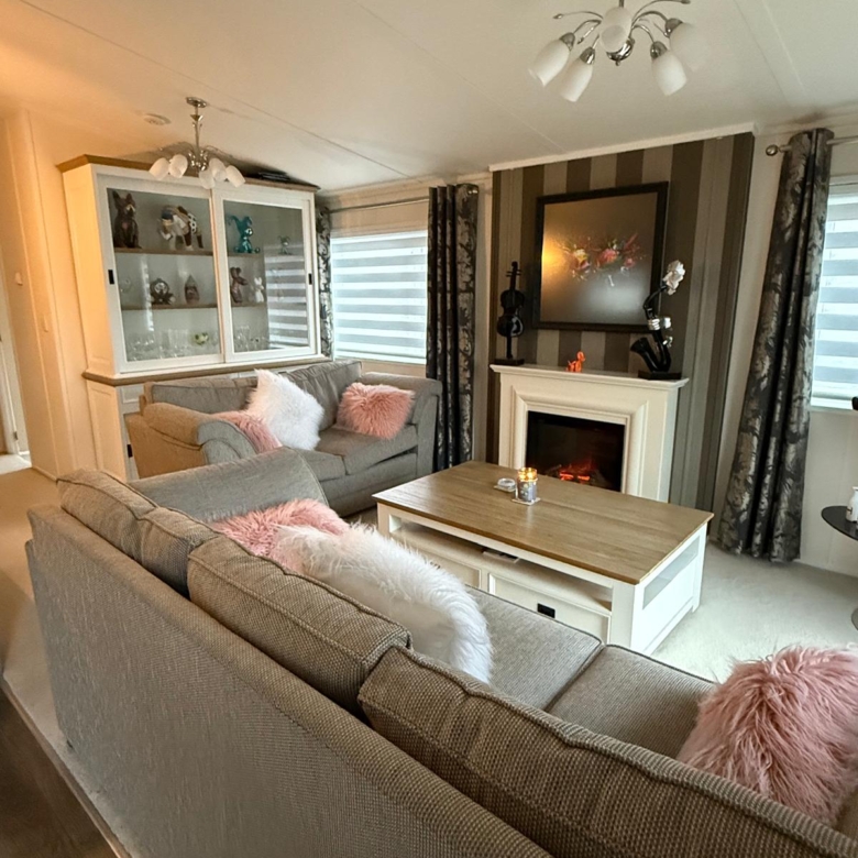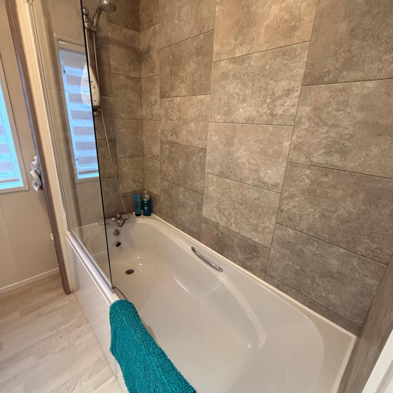 This exceptional Victory Parkview lodge, measuring a spacious 40 x 20 feet, has been thoughtfully appointed to provide a comfortable and convenient living experience. The entire lodge benefits from full double glazing, ensuring excellent insulation, reduced noise pollution, and enhanced energy efficiency. Adding to the comfort and practicality are roller shutters fitted to three of the bedrooms, providing effective shade from the summer sun and offering an added layer of security.