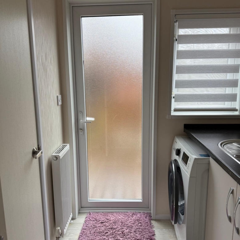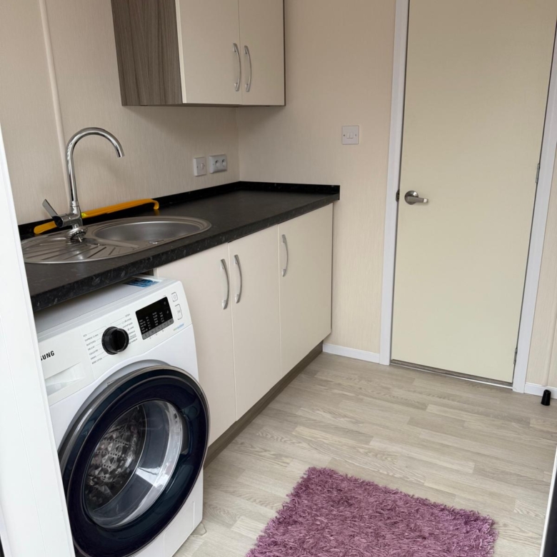 Internally, the lodge boasts a carefully considered layout and a range of quality floor coverings. The spacious lounge, all three bedrooms, and the hallway are fully carpeted, creating a warm and inviting ambiance underfoot. The kitchen and dining area feature durable and easy-to-maintain laminate flooring, ideal for high-traffic areas. For practicality and ease of cleaning, the bathrooms and the entrance/utility area are fitted with Lino flooring.