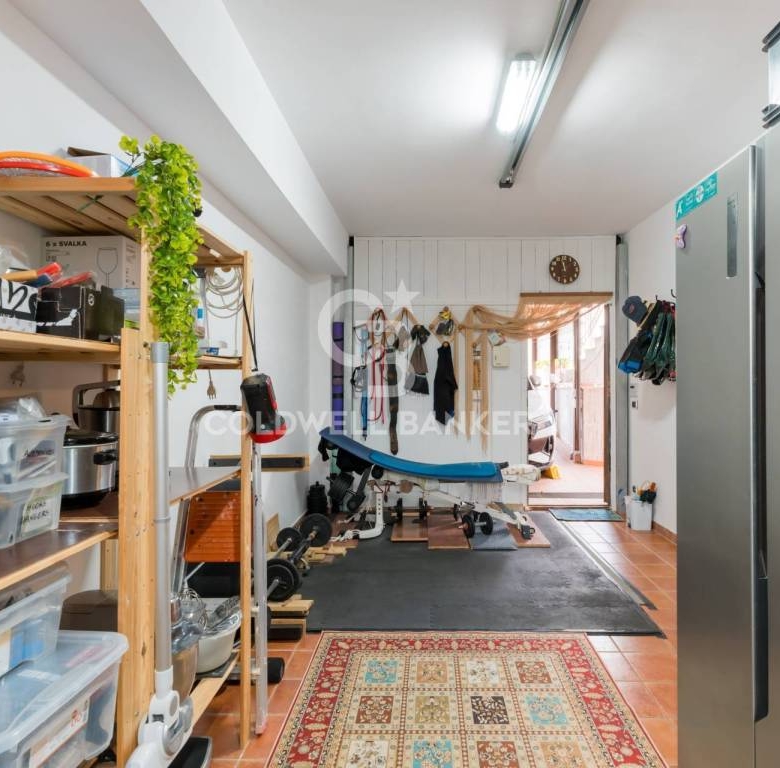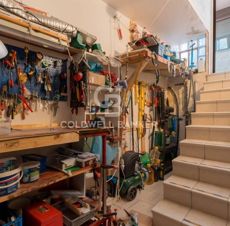 The property’s exterior spaces are designed for both entertainment and relaxation. A fully equipped outdoor kitchen, featuring a microwave, toaster oven, electric griddle, extra-large gas stove and burners, gas pizza oven, and a marble counter for pizza making, provides the perfect setting for alfresco dining and social gatherings. A gas barbecue and a wooden gazebo with a metal roof and integrated fan with light further enhance the outdoor living experience. A small garden shed provides additional storage space, while the stone-paved exterior floors and efficient drainage system ensure practicality and functionality. Awnings are installed on all levels except the terrace, providing shade and protection from the elements.