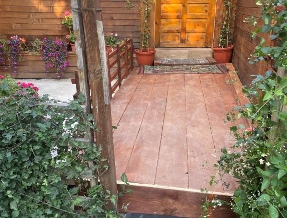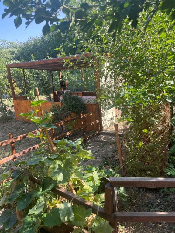 The garden features a large Gazebo which measures 3.5 meters x 2.5 meters and houses a couch and woodburning stove for both heating and BBQ cooking.