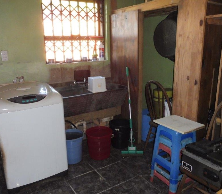 Out buildings attached to house:- Sleepout/office 9sq.m.Tiled floor, Toolroom bench and shelves Tiled floor, No window8 sq.m. , Garage /workshop Garage door(role-up) and window 30.m. Kliplock roof.