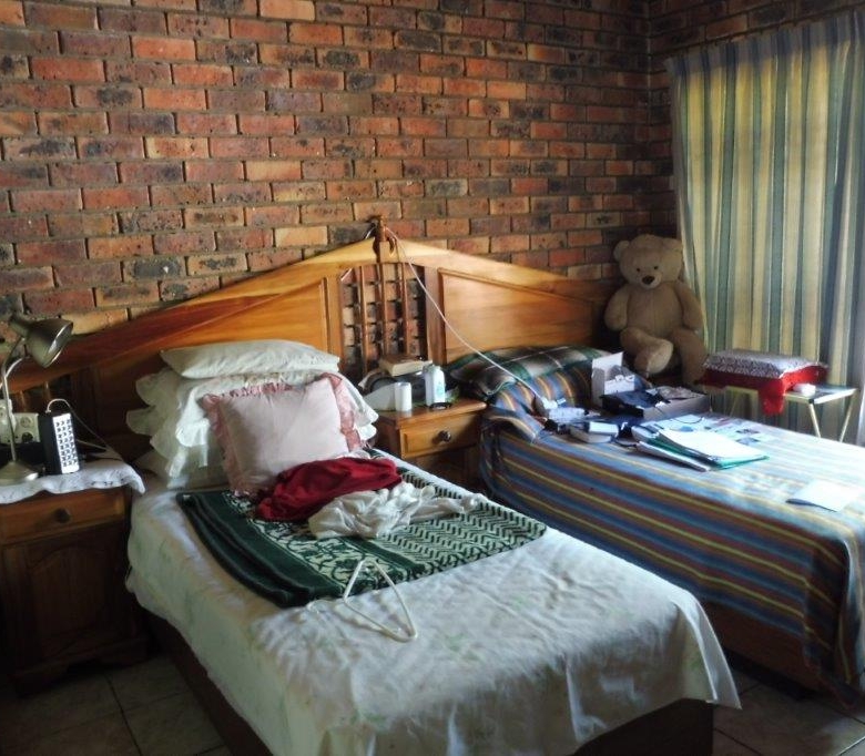 House:-Cavity Brick Home, Terracotta Tile roof with Isolation , Pine Ceilings. all floors tiled , Fireplace with Ironwood surrounds, Walk-in pantry (6 sq.m.)with shelves, In-house Vacuum Cleaner (2 outlets)one study with bed(included), Laundry, Bedroom With dressing room an shower and bathroom double bed(included) Bedroom two single beds(included) Passageway with shelving. second shower and bath with shower option. plus toilet Two Brick archways from lounge to Study and Lounge to kitchen Lounge 15x 5m. main entrance door Zimbabwean Teak surrounded by tinted glass Panels. Solar Hot water system, recently replaced geyser. the house is all secured with ‘trellidoor’ on All windows and doors.