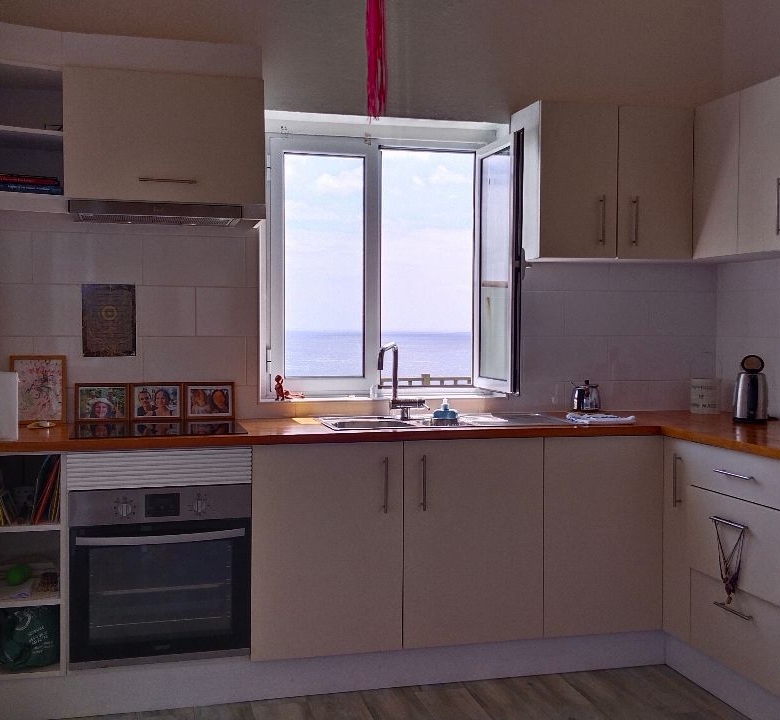 One of the most compelling aspects of this property is its inherent flexibility. Currently, the two levels are connected by an internal spiral staircase, allowing the house to be used as a single, large residence with five bedrooms and two additional rooms for an office or storage. This configuration is ideal for a large family or for those who desire ample space for guests or hobbies. However, with a simple removal of the staircase, the house can be reverted to its former state as two completely independent apartments—a three-bedroom (T3) downstairs and a two-bedroom (T2) upstairs. Both levels already have full kitchens, bathrooms, and separate entrances, making this conversion seamless. This dual-apartment setup presents a fantastic opportunity for rental income, allowing the owner to live in one unit while renting out the other, or to rent both for a substantial return on investment in the island’s thriving tourism market.