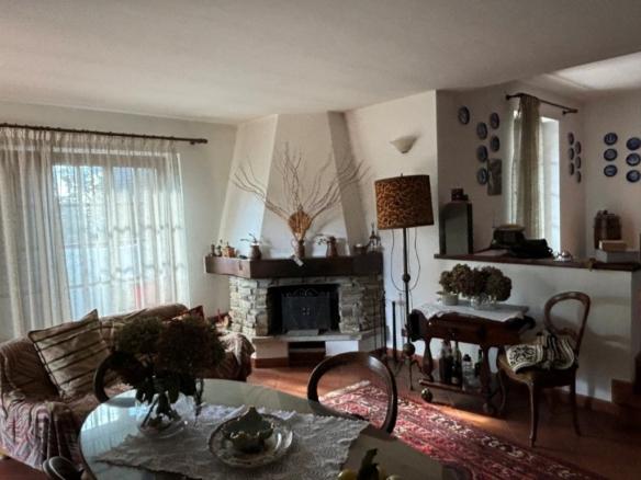 This charming villa is thoughtfully arranged over three floors, providing expansive and versatile living spaces. It features four comfortable bedrooms and two well-appointed bathrooms, offering ample accommodation for families or guests. The heart of the home is a large living room, perfect for relaxation and entertaining, made even cozier by a traditional fireplace that invites warmth and ambiance during cooler evenings.