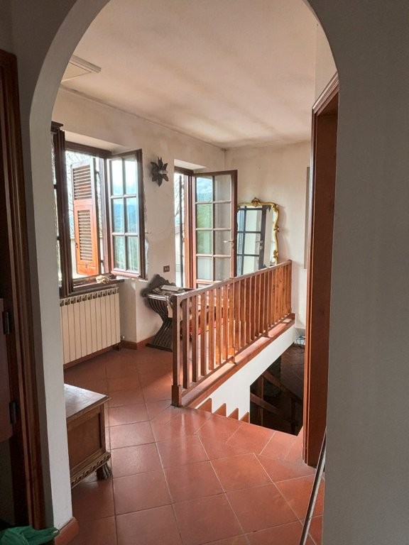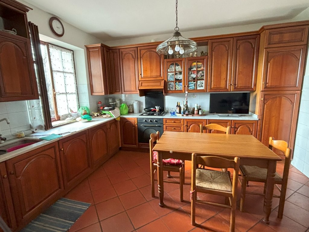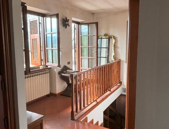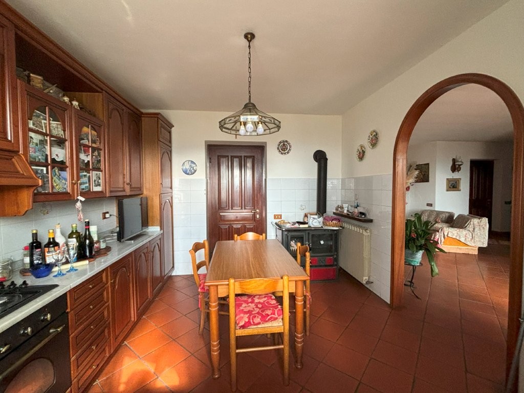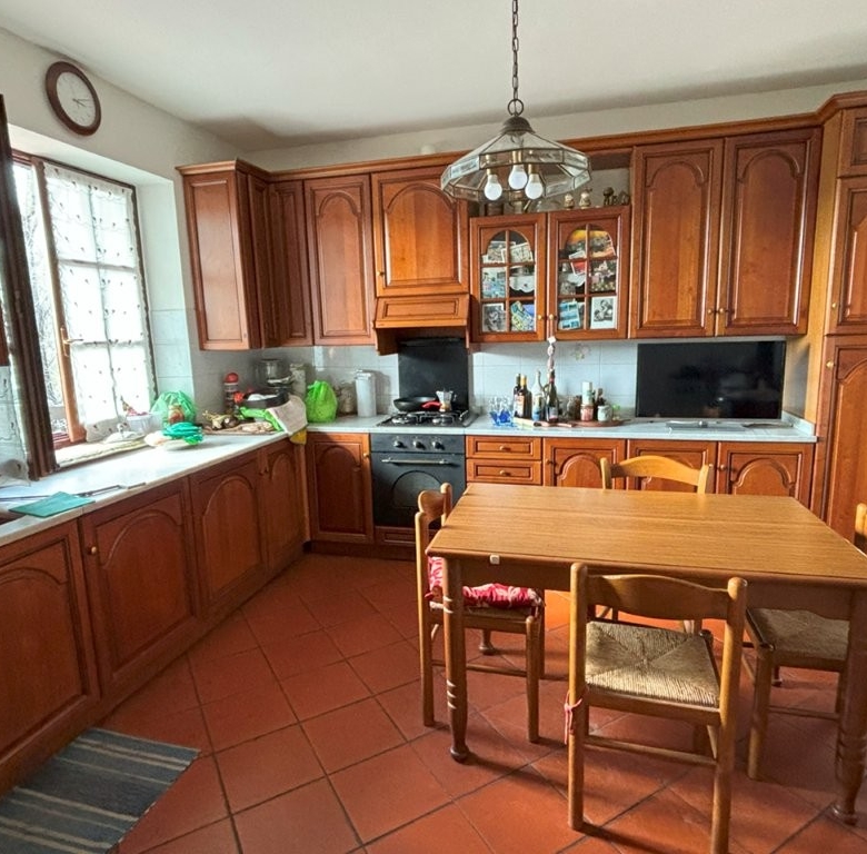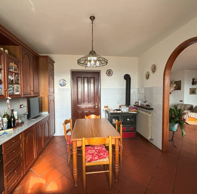 The large kitchen, a true highlight for any culinary enthusiast, comes equipped with a charming wood-burning stove, creating a rustic yet highly functional space for preparing authentic Italian meals. Throughout the main living areas, the presence of traditional terracotta floors adds to the villa’s authentic Italian charm, providing a warm and inviting atmosphere that complements the natural stone construction.