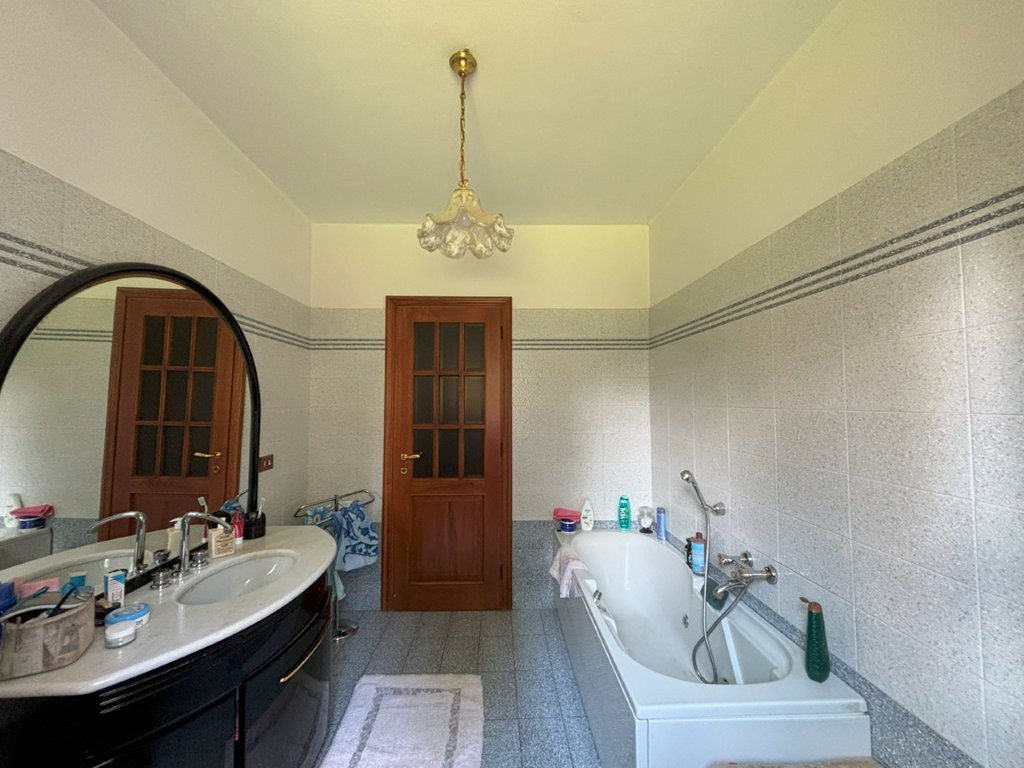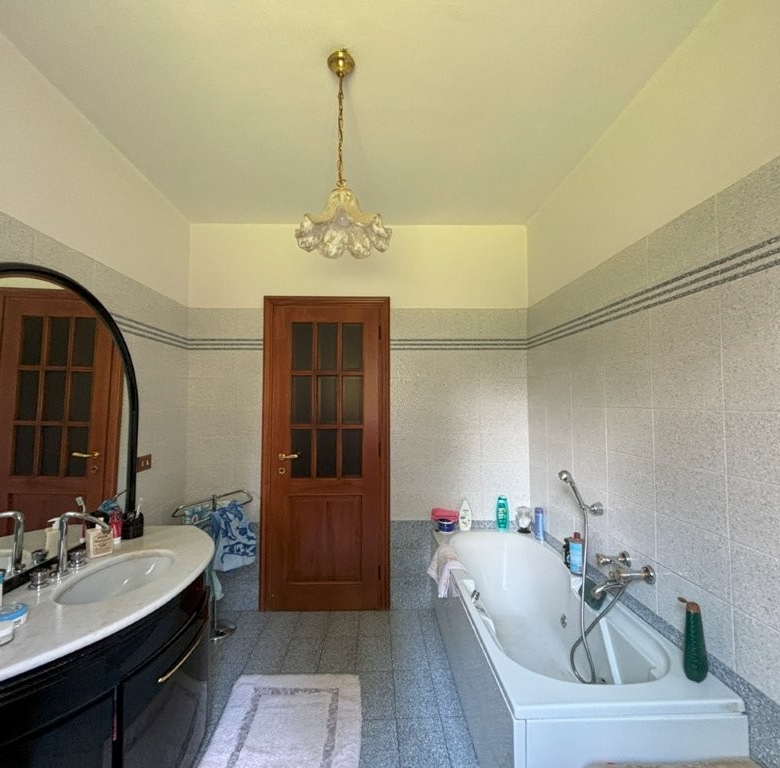 Adding to the property’s allure is a magnificent tavern (taverna), featuring an impressive brick oven. This space is ideal for hosting lively gatherings, baking traditional pizzas, or simply enjoying the company of friends and family in a uniquely Italian setting. For practical convenience, the villa also includes a double garage, offering secure parking and additional storage. Every element of the interior speaks to a lifestyle of comfort, elegance, and a deep appreciation for Italian craftsmanship.
