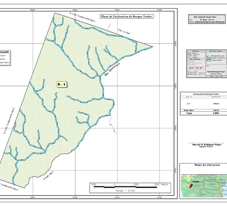 The boundaries of this significant property are clearly demarcated by notable natural landmarks and local areas. To the north, the property adjoins the Alerce National Park Forest, a protected area renowned for its ancient and towering Alerce trees (Fitzroya cupressoides), a species of immense ecological significance and national heritage. To the south lies the welcoming locality of La Esperanza, a neighboring community that contributes to the region’s local character. The eastern border of the property is defined by the Hueyusca River, a significant watercourse that offers both natural beauty and potential resources. To the west, the property extends towards the inner reaches of the coastal mountain range, the Cordillera de la Costa, which runs parallel to the vast expanse of the Pacific Ocean. The precise coordinates of the property’s corners further define its substantial dimensions: North East Corner: -41.005333 -73.648611; North West Corner: -40.993109 -73.704681; South West Corner: -41.061094 -73.736563; South East Corner: -41.065343 -73.720057.