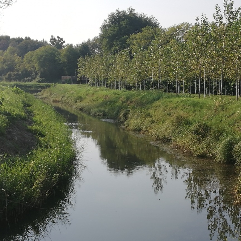 On the south-facing side of the plot, within 2 min walk, the Dese River, with its lush meanders, will appear in all its capturing viridity. The next project for the community will be a long-distance riverbank walk passing through the ancient water mills scattered throughout its lengths (one of them located in close proximity of the plot). The small but vital Dese River originates from natural ground springs (called ‘risorgive’) in Castelfranco Veneto area and flows east direction to the Veneto Lagoon in close proximity with Venice.