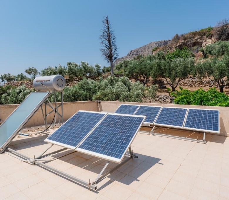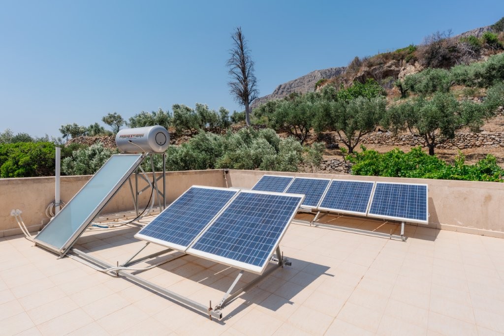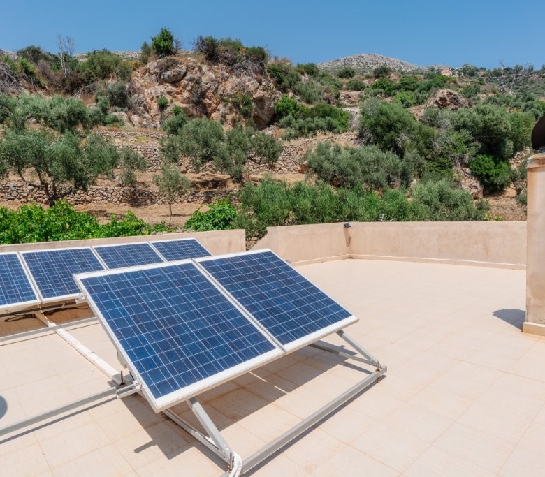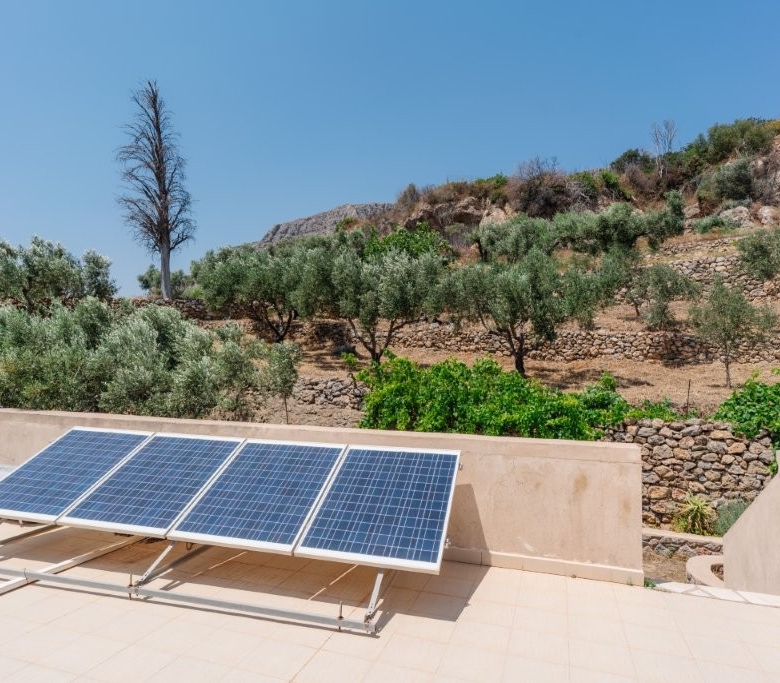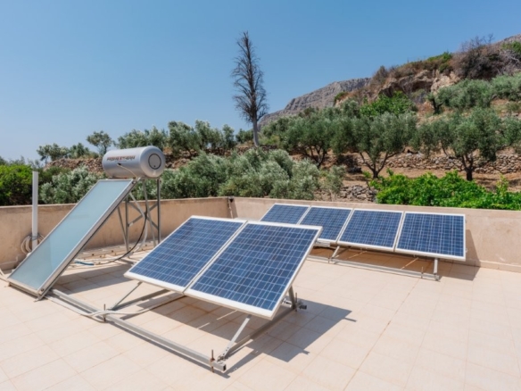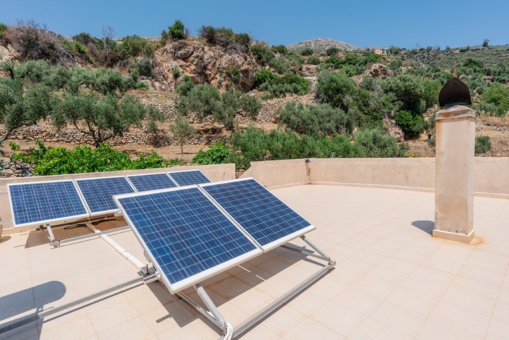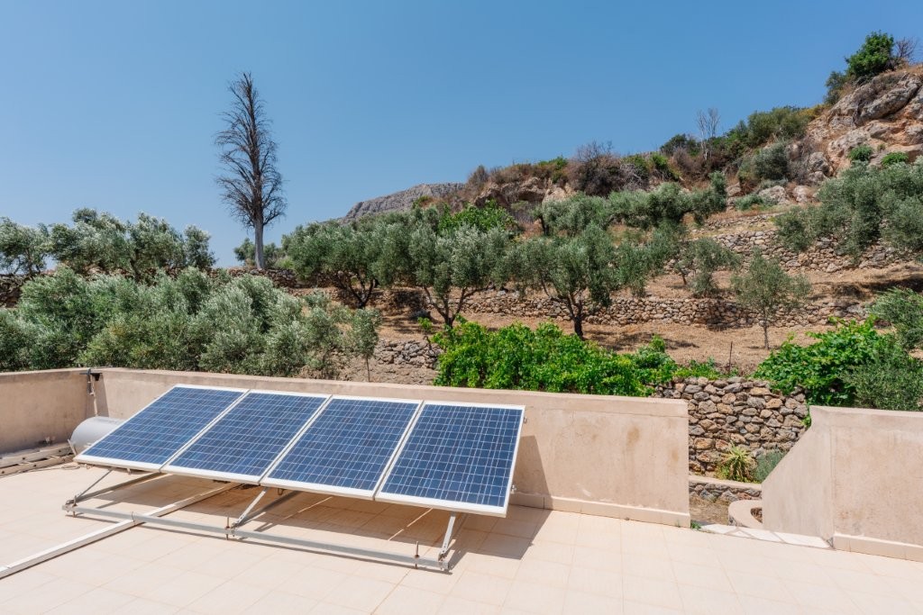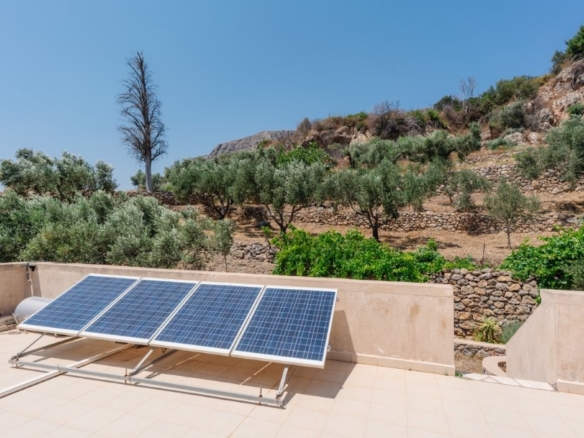 The heart of this property is its meticulously designed, earth-sheltered, solar-powered, stone-faced house. This innovative construction ensures energy efficiency and blends seamlessly with the natural landscape, offering superior insulation and a stable indoor climate year-round. A defining feature of this villa is its complete independence from the main power grid. The property operates entirely off-grid, powered by a robust solar energy system. This sustainable setup, comprising efficient solar panels, advanced batteries, and a reliable inverter, provides ample electricity for all your modern conveniences. You can run a standard refrigerator, washing machine, lights, and numerous outlets without a single concern about electricity bills or power outages, offering true freedom and environmental responsibility.