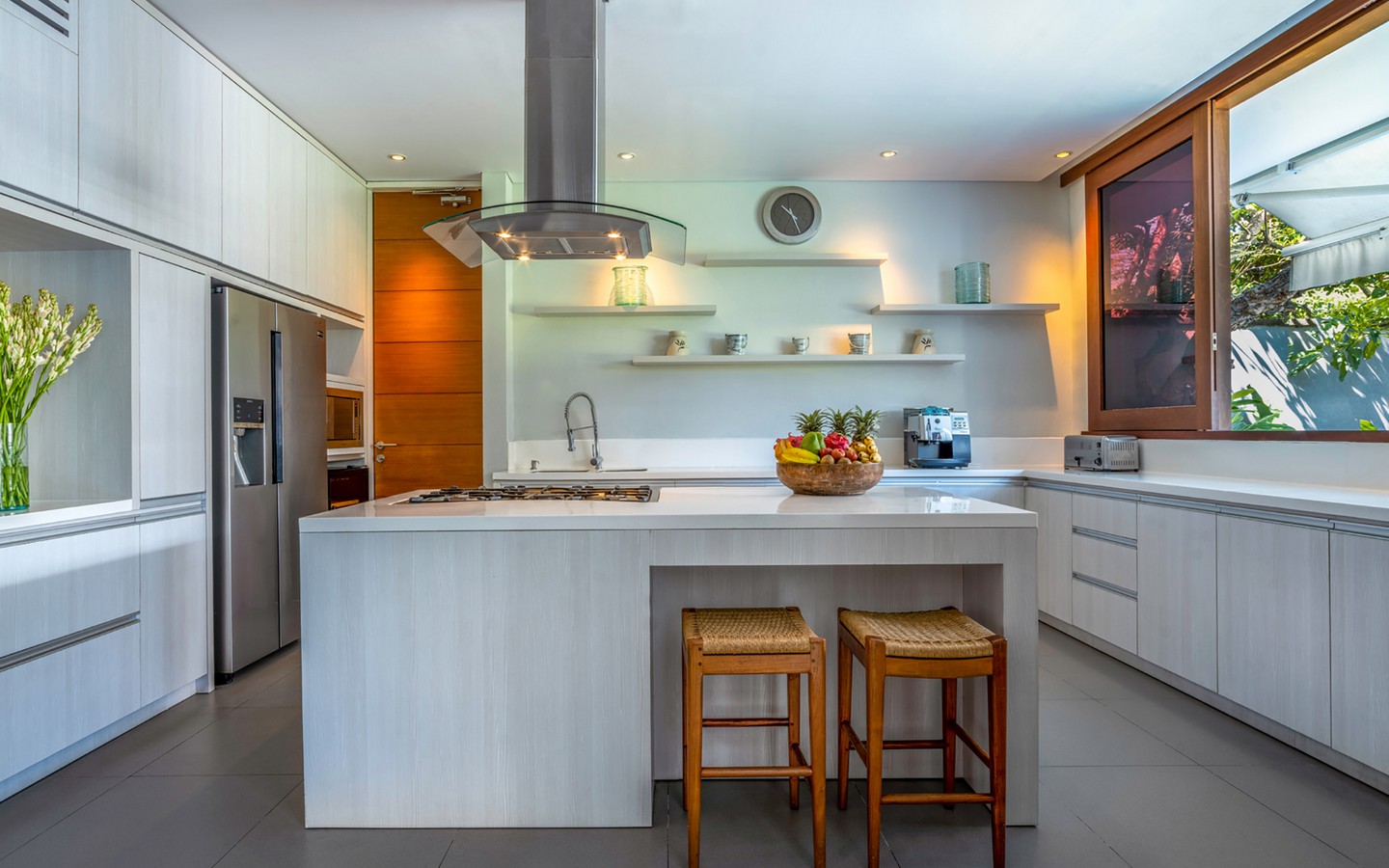 This 5 bedroom FREEHOLD villa presents a stylish modern design, complemented by ample creature comforts, including an 18-metre swimming pool, well-equipped gym, newly renovated kitchen, luxurious bathrooms and lovely sun deck. Sunsets are best enjoyed from the roof-top terrace with tantalising glimpses of rice paddies, glistening ocean and the island’s towering volcanoes. A garden door opens onto a secret passageway that leads you to the beach. With the famous W Resort right next door, the villa perfectly reflects it’s setting in Petitenget, a district renowned for hip beach clubs, world-class dining, fun bars and gorgeous boutiques.