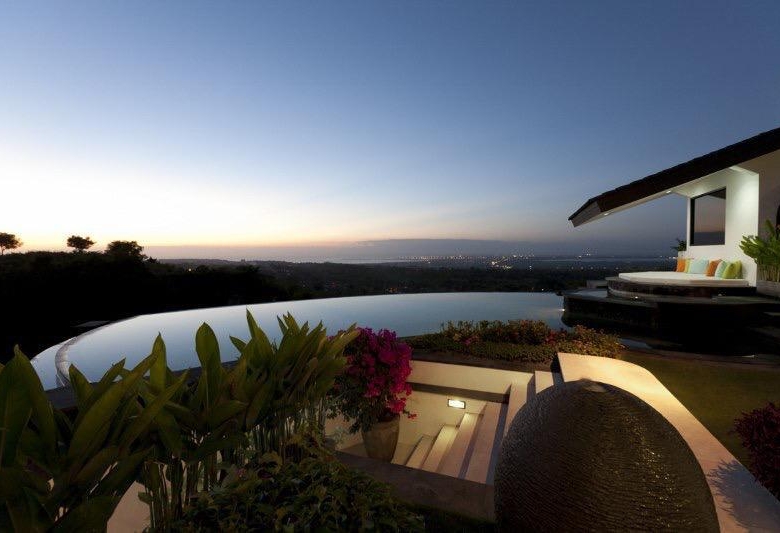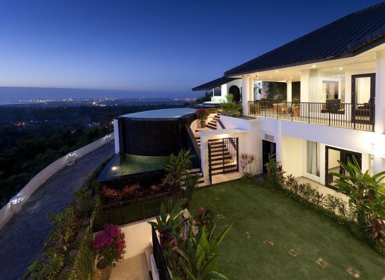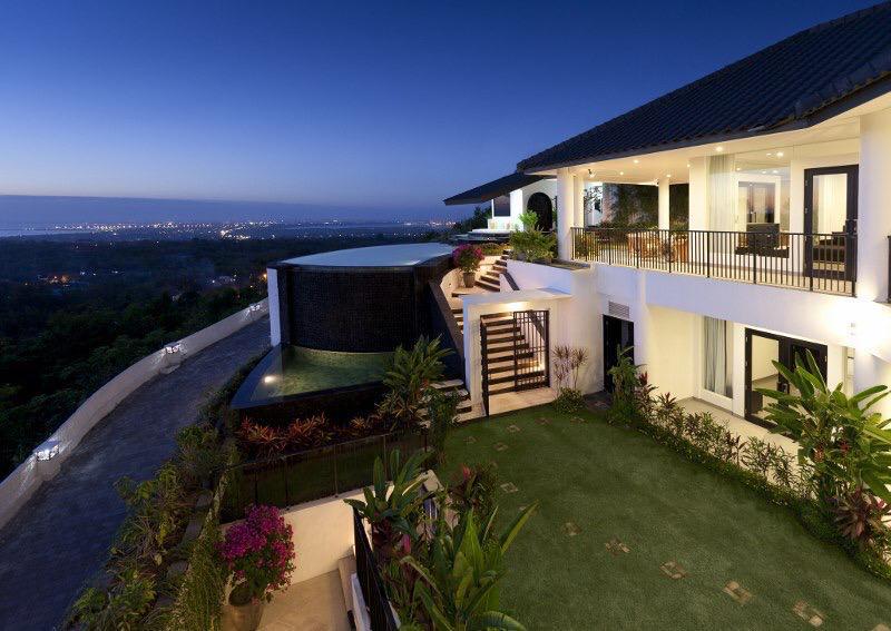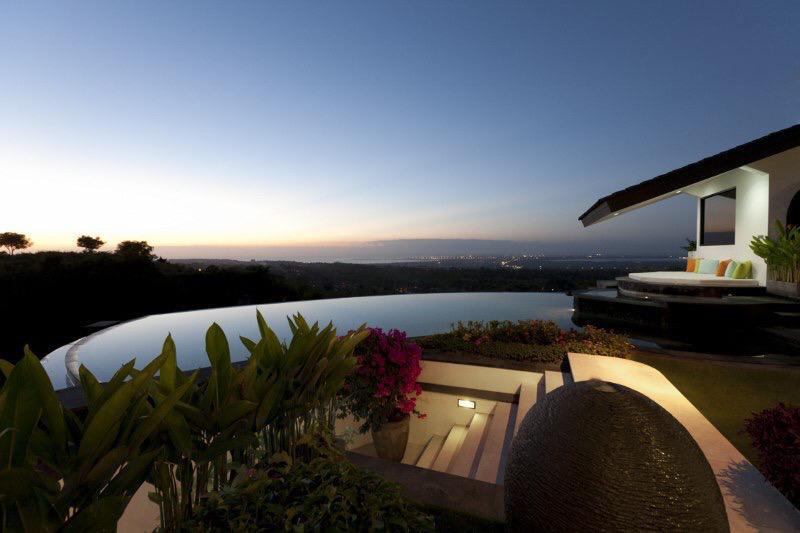 An outstanding piece of FREEHOLD property that is carved into a cliff, a breathtaking sight with 270° unobstructed views of the ocean, Mount Agung, Lombok Sea and Jimbaran Bay. The villa also has magnificent city-lights views in the evening. This striking 5-bedroom luxury villa with a long infinity swimming pool is located in one of Bali’s most sought-after, private neighbourhoods in Jimbaran, with 24 hours security making it a highly sought-after asset and a rare find in Bali’s luxury real estate market.