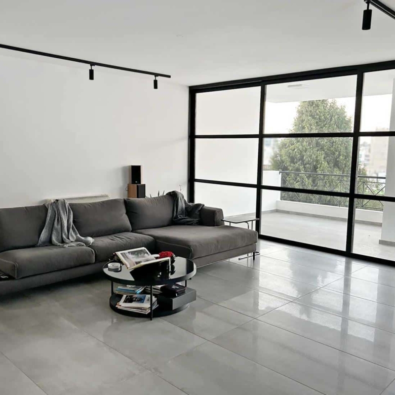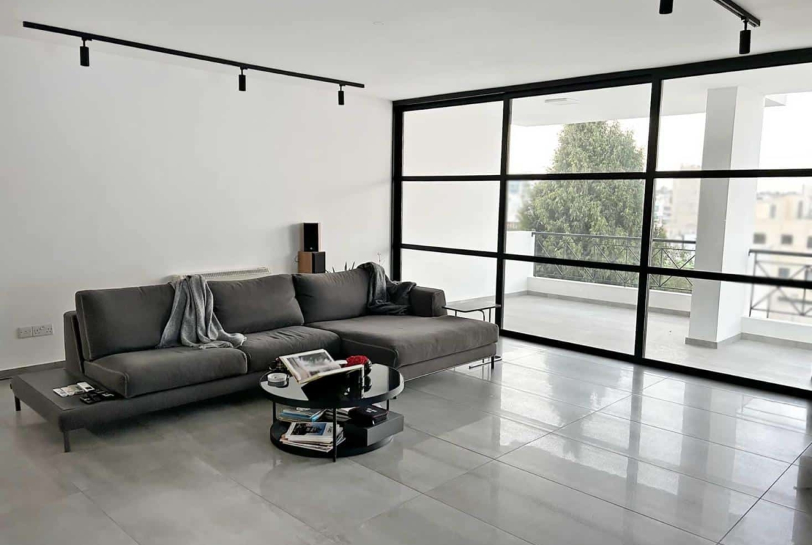 This exceptional whole floor penthouse is located in the prestigious Engomi area, just 300 meters from 28th October Street. Occupying the entire third floor of a boutique building with only six apartments, it offers unobstructed views of the Pentadactilos mountain range and fronts a serene park. Recently renovated with a sleek loft design, it features state-of-the-art amenities, including full AI automation.