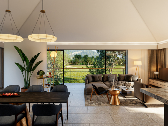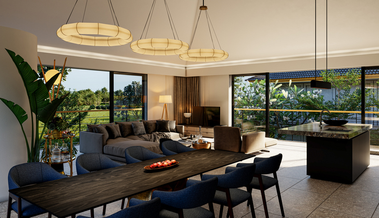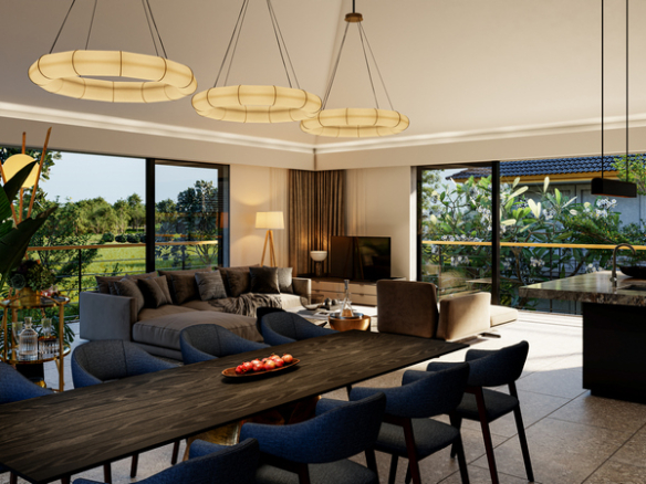 Each villa spans two levels, thoughtfully crafted to maximize space and comfort. With three bedrooms, three bathrooms, and a stylish open-plan living and dining area, the interiors are a perfect balance of modern sophistication and natural charm. Expansive windows frame stunning views of the lush golf course and surrounding mountains, while high-end furnishings and rain showers add a touch of indulgence. The villas are sold fully furnished, ensuring a seamless move-in experience or an effortless rental setup for those looking to generate passive income.