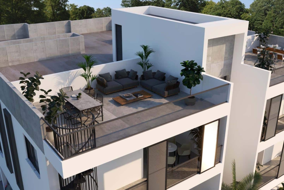 Discover contemporary living in this brand new 2 bedroom penthouse, designed for those who appreciate elegance and comfort. Located in a tranquil neighborhood in Lakatamia this residence offers a spacious open plan layout, seamlessly blending the living, dining, and kitchen areas. The interiors boast high end finishes, including premium flooring and modern fixtures, creating an atmosphere of sophistication. The highlight of this penthouse is the expansive private roof garden, providing panoramic views of the city and surrounding areas. This outdoor space is perfect for relaxation, entertaining guests, or enjoying al fresco dining under the stars. Additional features include two well appointed bedrooms, each designed for comfort and privacy, and modern bathrooms equipped with quality fittings. With its prime location, luxurious amenities, and thoughtful design, this penthouse offers an exceptional living experience in Nicosia.