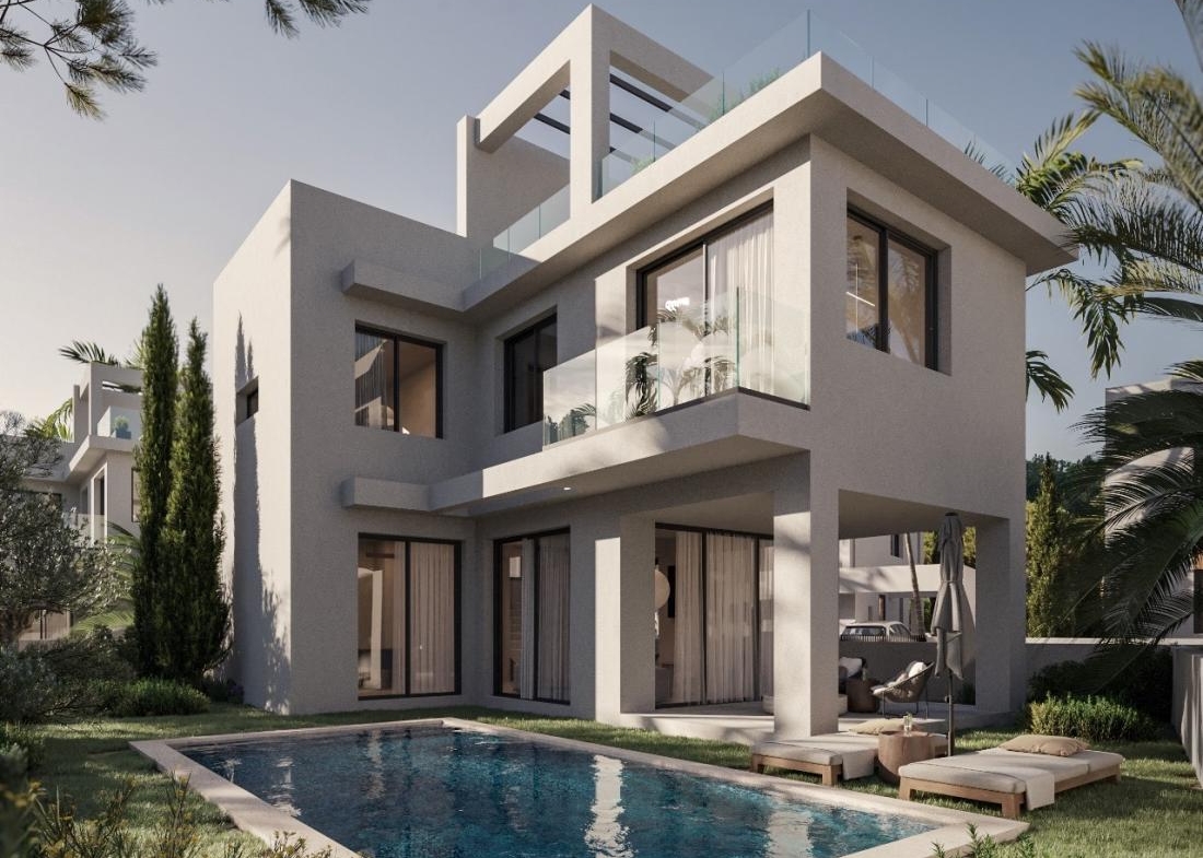 Situated in the cosmopolitan seaside resort of Protaras, in the popular and rapidly developing area of Pernera, and near the new Paralimni Marina, this stunning development embodies luxury, quality and design. The residences boast clean, minimal geometric lines, showcasing a distinctive design and elevated aesthetics evident in the natural tones of both interiors and exteriors. Each villa features a private swimming pool, garden, and a roof garden with captivating sea views. The ground-floor covered terraces seamlessly merge indoor and outdoor spaces, establishing an inviting environment to enjoy the Mediterranean climate of Cyprus all year round.