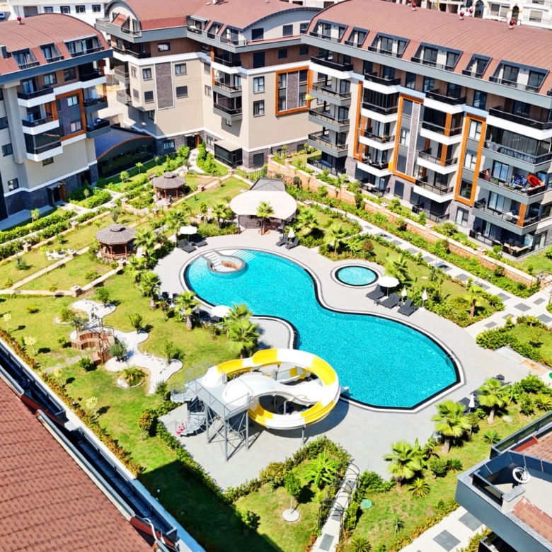 As atop property for sale in Alanya, it includes world-class on-site amenities: indoor and outdoor pools, Turkish bath, sauna, jacuzzi, fitness center, massage rooms, cinema, game areas, and sports courts for football, tennis, and basketball. You’ll also find barbecue zones, camellias, a generator, elevators, both open and covered parking, and 24/7 video security. This duplex offers a unique blend of luxury, location, and lifestyle in Oba’s best residential complex.