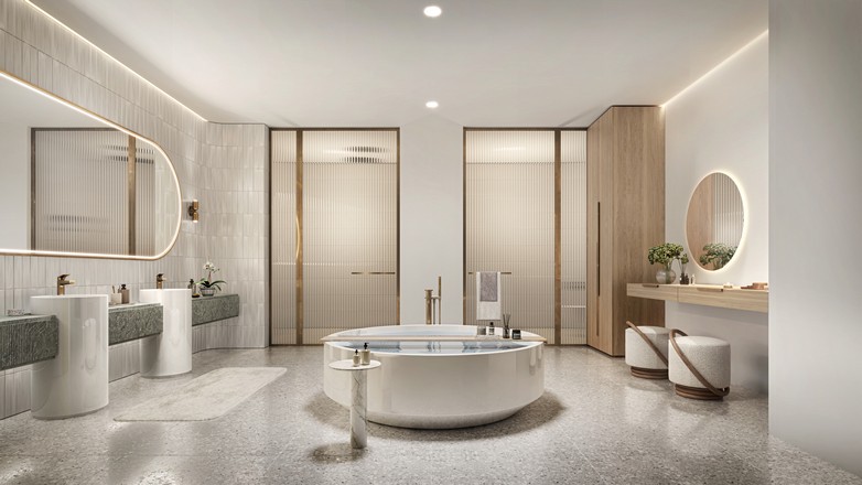 Bathrooms: Spa-inspired sanctuaries with nature-infused designs, elegant tiling, and refined fixtures for an indulgent experience.
