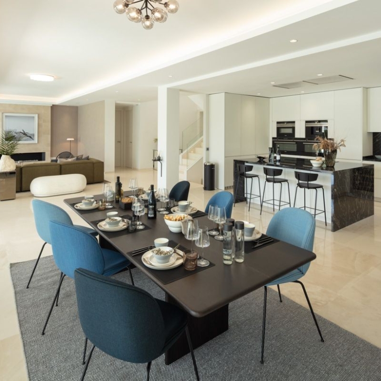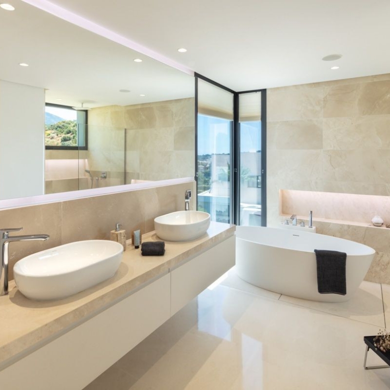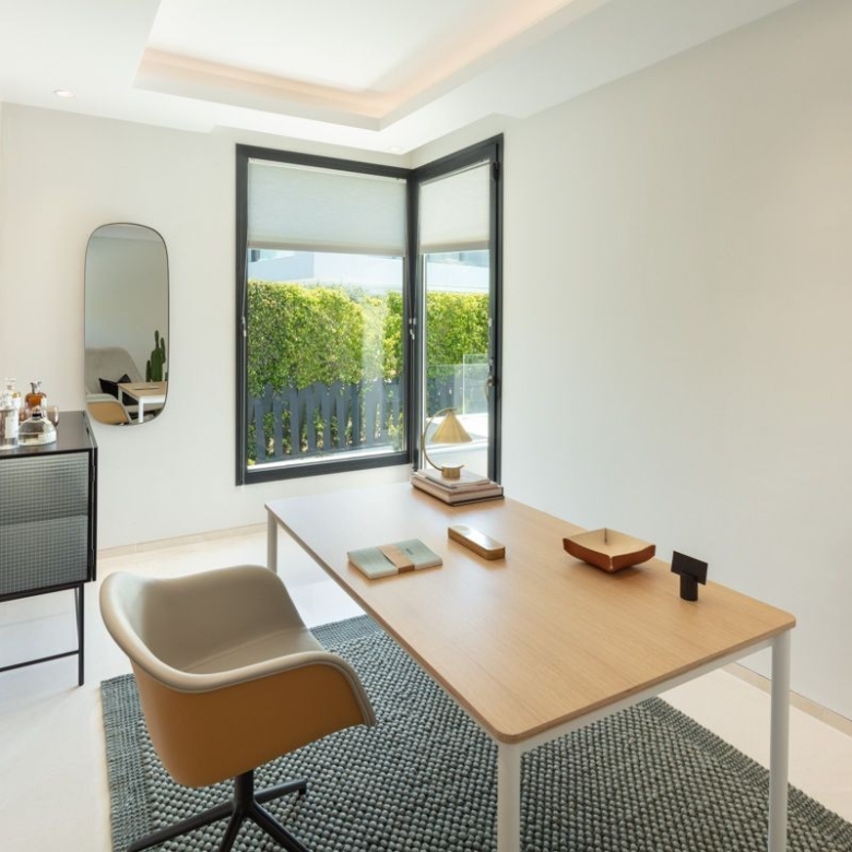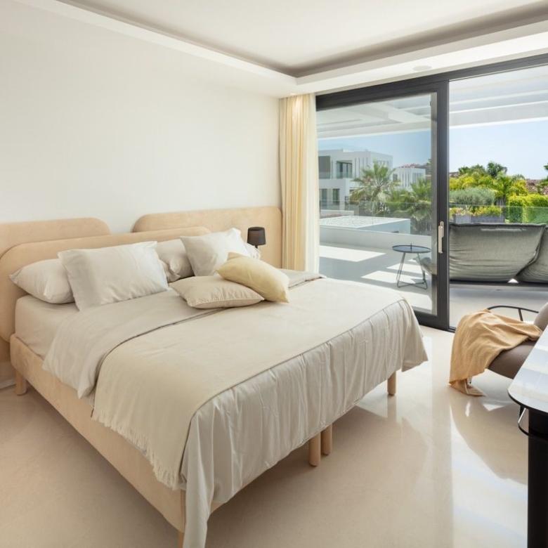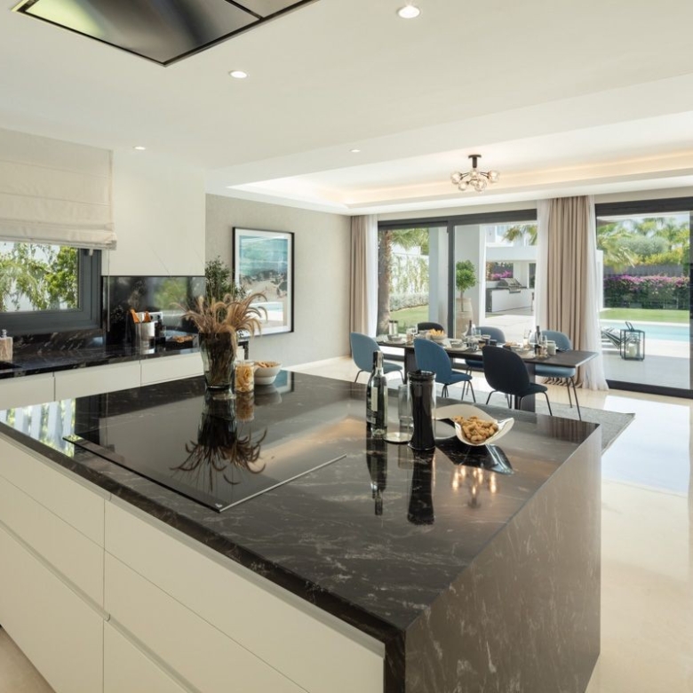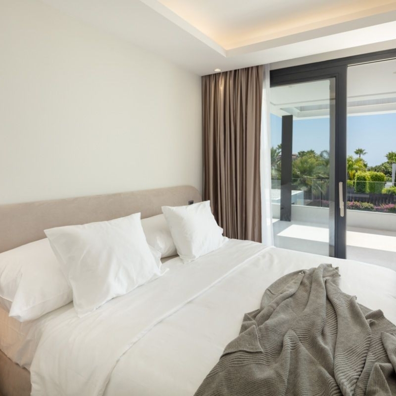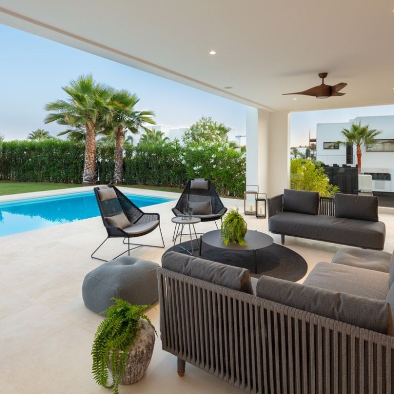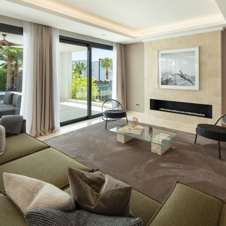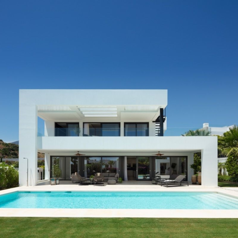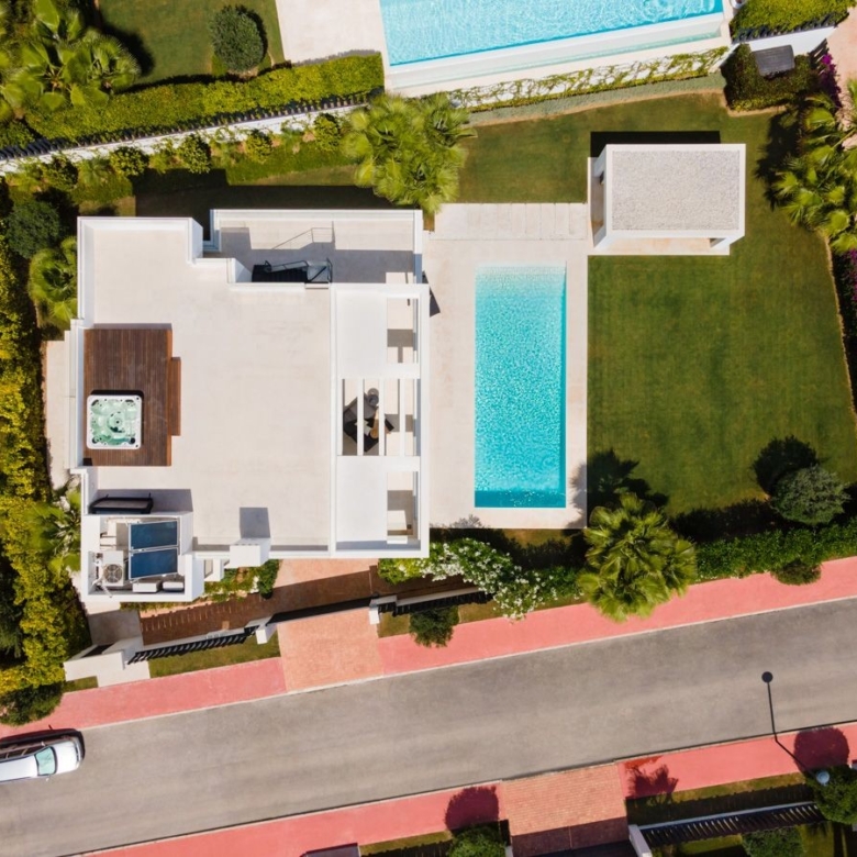 High quality contemporary villa located in a ultra-secure gated community in the sought-after area of Nueva Andalucia, within short distance to the most prestigious golf courses of Marbella. This property is set on a plot of 1,000 m2 with a manicured garden and a turquoise swimming pool. This exquisitely presented has been thoughtfully designed with an open-plan layout that maximises space and light. Expansive floor-to-ceiling windows, large basement, noble material and sophisticated touches are some the sublime features. The villa boasts an elegant and minimalistic interior design that blends to perfection with the contemporary architecture. The property affords fantastic luxury features including: underfloor heating, air conditioning hot/cold, alarm system, infra-red detectors in every room, high quality sound and domestic system. This is definitely one of the most attractive contemporary villas in the Golf Valley!