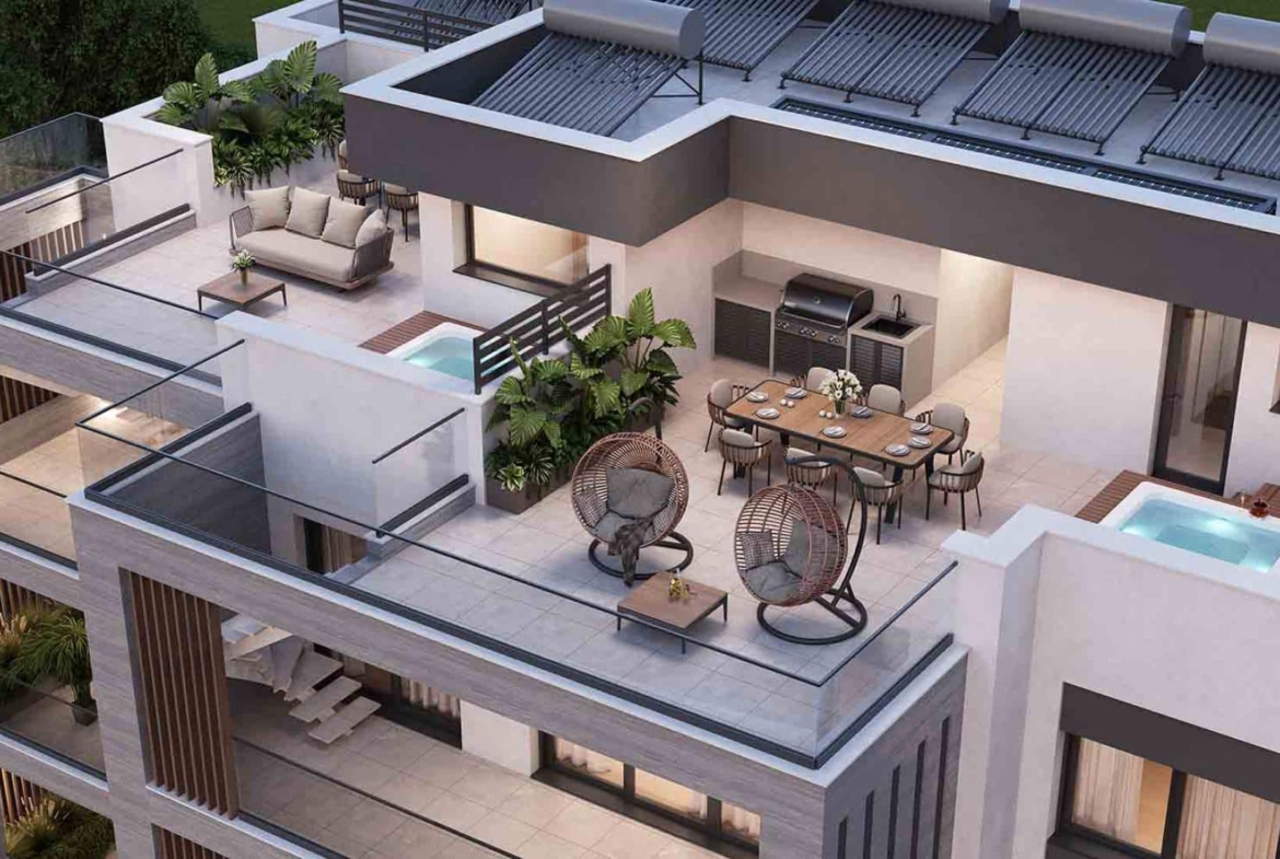 A new premium residential complex in Germasogeia, Limassol. The project includes 16 apartments of a premium class in a thriving location, a central spot in the heart of Limassol’s tourist area, bustling with vibrancy, incredible shopping, and an endless array of upscale restaurants in Limassol. A unique combination of pleasure living close to the best beaches and entertainment with an active business environment. Exquisite penthouses with their own spa and spacious terraces will allow you to spend unforgettable evenings with a closed community, and to find business partners or close friends.