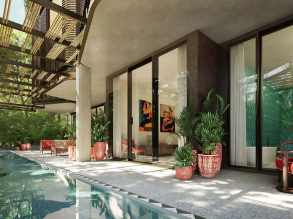 Experience the ultimate in tropical living with this stunning 3-bedroom ground-floor condo in the renowned Faena District Tulum. Surrounded by lush jungle and infused with the spirit of Mayan heritage, this residence offers a seamless blend of contemporary design and natural harmony.