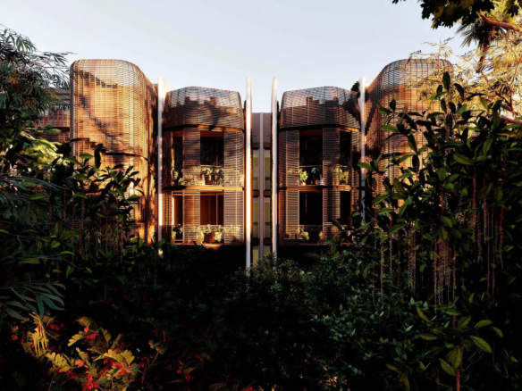 Designed by acclaimed architect Brandon Haw, this condo features warm wood accents, polished chukum plaster, and an earthy palette of ochre yellows and dusty pinks. Expansive living spaces flow effortlessly into private outdoor terraces, where forest greenery creates a serene retreat. Burnt sienna screens add privacy and elegance, while soft light fills the home with a tranquil ambiance.
