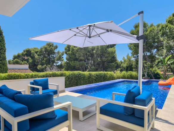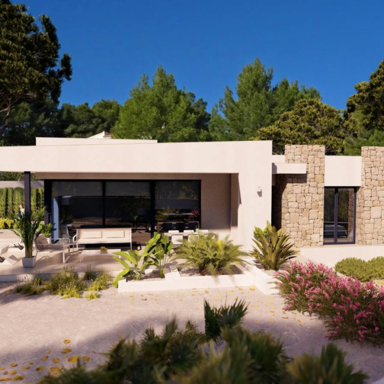 Residential Complex in Benissa, Costa Blanca North 5 homes specifically designed and adapted to your plot. With an exclusive design and its own character, integrated into its surroundings and designed to enjoy the Mediterranean climate. All the houses are built on one floor, making them practical and functional houses. From the entrance you access the hall, where the day area is on the left, here is the kitchen fully open to the dining room and living room from where you can directly access the terrace, the outdoor porch and barbecue. On the right side we access the night area distributed in 3 bedrooms. The master bedroom has an individual bathroom with a dressing room and the other two bedrooms have a shared bathroom. As well as a laundry area. Finally, on the outside terrace we find the pool with a relaxation area to enjoy the sun or have dinner on the barbecue. As well as access to the garden areas. Property ID: GH-307402 Price: €925,000 Property Size: 150 m2 Land Area: 800 m2 Bedrooms: 3 Bathrooms: 2 Property Type: Villa Property Status: For Sale