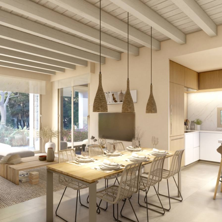 Villa for sale in Benissa, Costa Blanca Distributed all on one floor, making it a practical and functional house. From the entrance there is access to the hall, on the right hand side is the day area, where we find the kitchen completely open to the dining room and living room from where there is direct access to the terrace, the outdoor porch and barbecue. On the left side we access the night area distributed in 3 bedrooms. The master bedroom that has an individual bathroom as well as a dressing room and the other two bedrooms that share a bathroom. On this side of the house there is also a laundry area. On the outdoor terrace we find the pool with a relaxation area to enjoy the sun or a barbecue dinner. As well as access to the garden areas. A development in which each villa has been specifically designed and adapted to the plot. With an exclusive design and its own character, it is integrated into its environment and designed to enjoy the mild Mediterranean climate. Located in the Residencial Fanadix complex, surrounded by nature and located in a strategic place, very close to the Baladrar, Advocat and Fustera coves and only 10 minutes from Calpe and Moraira. Property ID: GH-307512 Price: €890,000 Property Size: 261 m2 Land Area: 800 m2 Bedrooms: 3 Bathrooms: 2 Property Type: Villa Property Status: For Sale