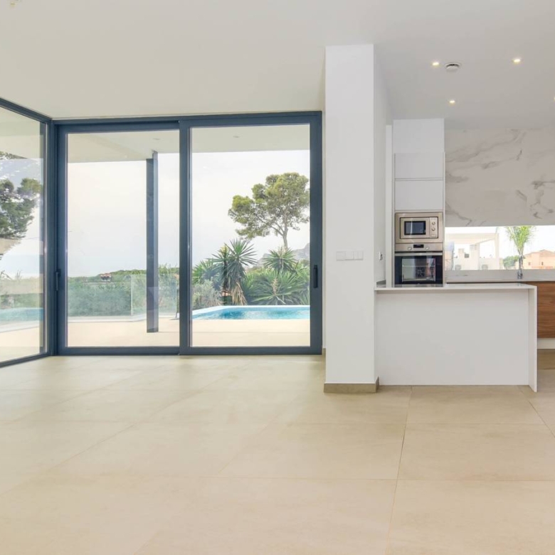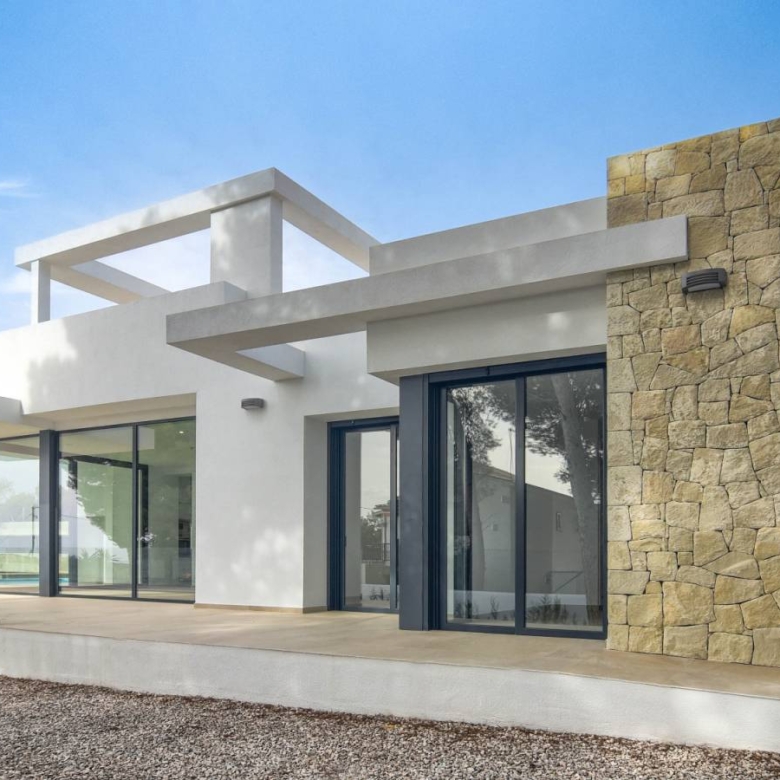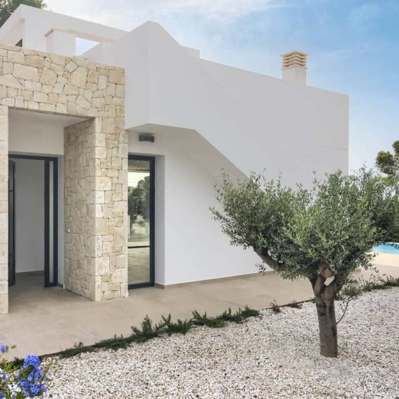 Villa for sale in Benissa, Costa Blanca North A promotion in which each villa has been designed and adapted specifically to the plot. With an exclusive design and its own character, it is integrated into its surroundings and designed to enjoy the mild Mediterranean climate. All distributed on one floor, making it a practical and functional house. From the entrance you access the hall, on the right hand side is the day area, where we find the kitchen completely open to the dining room and living room from where you can directly access the terrace, the outdoor porch and barbecue. On the left side we access the night area distributed in 3 bedrooms. The main bedroom that has an individual bathroom as well as a dressing room and the other two bedrooms that share a bathroom. On this side of the house there is also a laundry area. On the outside terrace we find the swimming pool with a relaxation area to enjoy the sun or have dinner on the barbecue. As well as access to the garden areas. Property ID: GH-307405 Price: €925,000 Property Size: 153 m2 Land Area: 800 m2 Bedrooms: 3 Bathrooms: 2 Property Type: Villa Property Status: For Sale