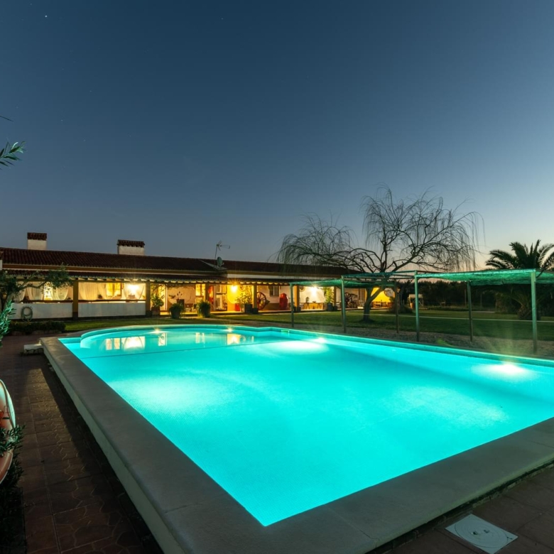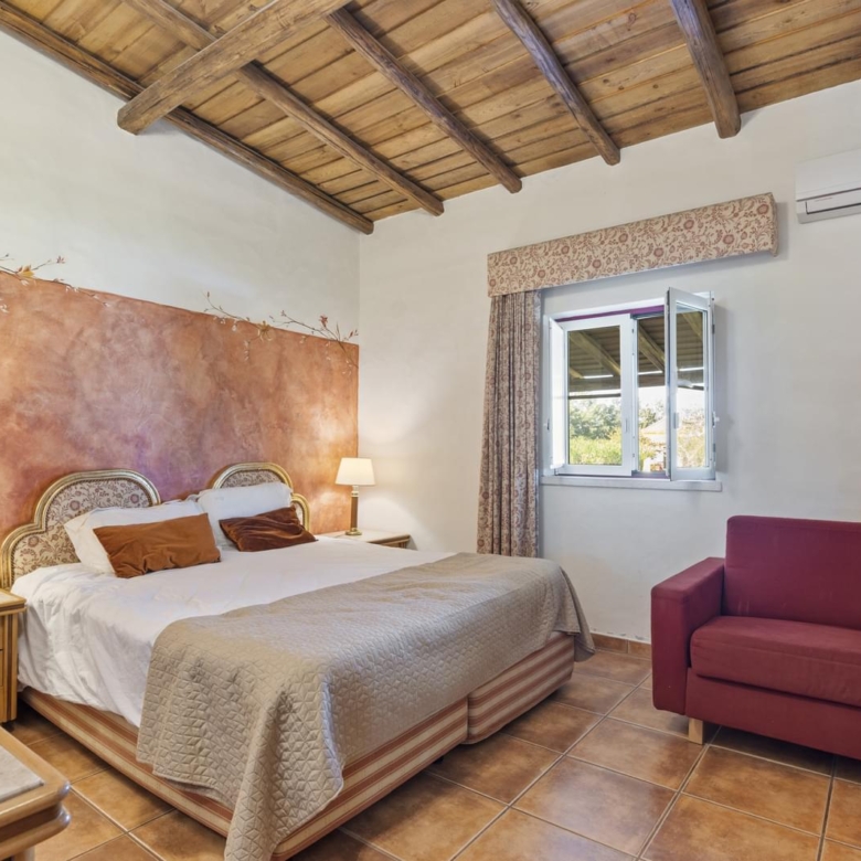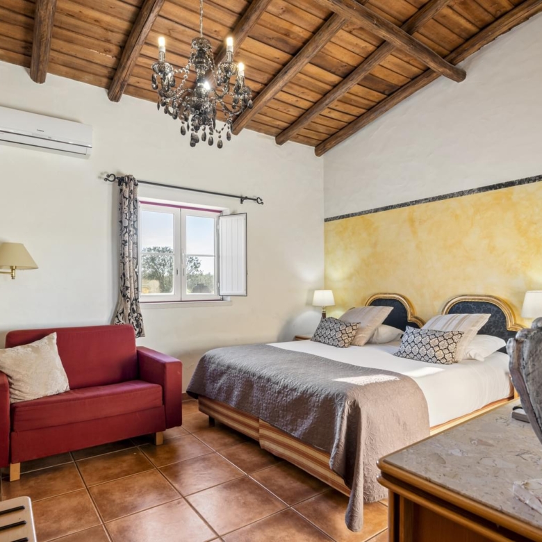 In the heart of Alentejo, between cork oaks and the vast plain that stretches as far as the eye can see, arises this magnificent property, now transformed into a rural tourism. Here you can enjoy moments of rest and serenity and participate in several outdoor activities in perfect harmony with nature. The property covers 2.8 hectares of a fully fenced land and has registered the following buildings: - The main house is composed by 5 suites, living room with fireplace and television, equipped with games, such as snooker, chess, poker or the option of karaoke, kitchen and bathroom. - 3 outdoor villas, each with 2 bedrooms, bathroom, living room with kitchen and porch with barbecue. One of the suites is specially adapted for people with reduced mobility; - a small villa with a suite with closet, living room with kitchen in open space with fireplace and heat recovery unit. In addition, a charming outdoor swimming pool stands out, ideal for the hottest days and perfect for the fun of the youngest. At the Pedagogical Farm, families can enjoy unique moments, interacting with the resident animals. The site has a lake inhabited by ducks and geese, as well as donkeys, ponies, goats, sheep, pigs and various birds. The property’s strategic location puts the Roxo and Odivelas Dams at a distance of 17 km and 25 km respectively, providing convenient proximity to these points of interest. This property is more than just a space; it is a haven that harmonizes luxury with simplicity, offering an authentic experience in the heart of the Alentejo serenity. Porta da Frente Christie’s is a real estate agency that has been operating in the market for more than two decades. Its focus lays on the highest quality houses and developments, not only in the selling market, but also in the renting market. The company was elected by the prestigious brand Christie’s International Real Estate to represent Portugal in the areas of Lisbon, Cascais, Oeiras and Alentejo. The main purpose of Porta da Frente Christie’s is to offer a top-notch service to our customers. Property ID: PDF-PF32032 Price: €3,100,000 Property Size: 840.0 m2 Land Area: 28000.0 m2 Bedrooms: 15 Bathrooms: 14 Property Type: Farm Property Status: For Sale
