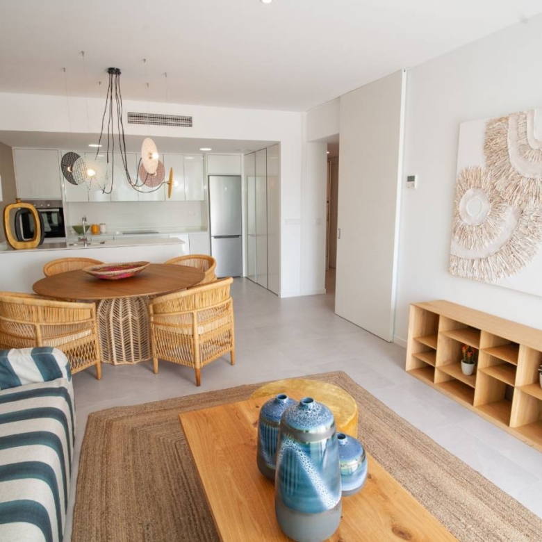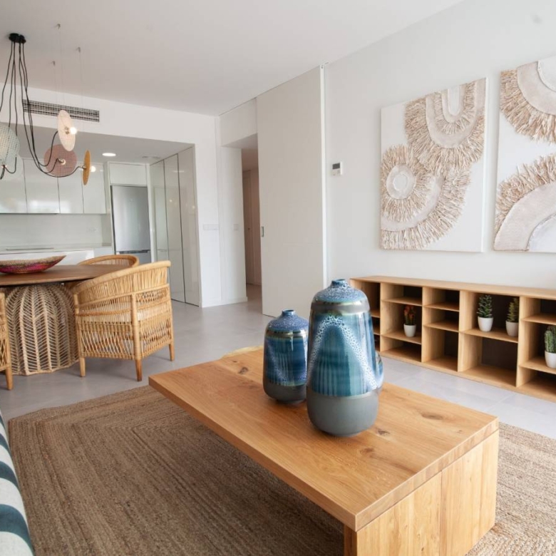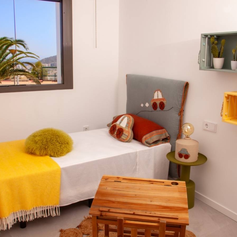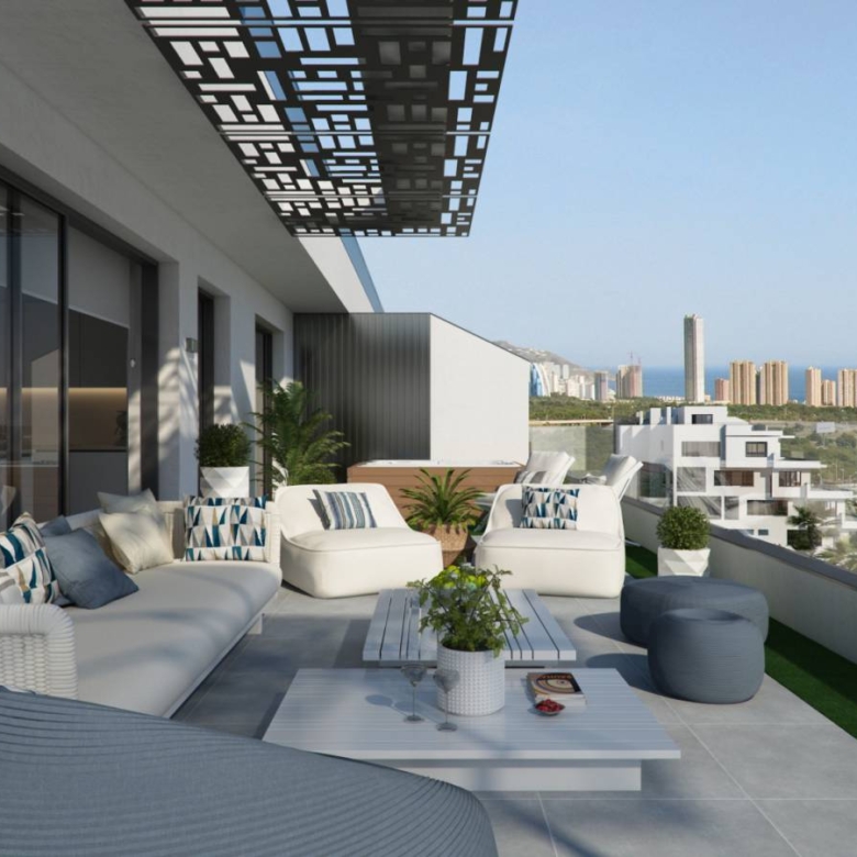 Apartments with sea views in Finestrat, Costa Blanca 70 homes with private terraces distributed in 3 blocks with 2 and 3-bedroom homes, and 2 single-family villas with 3 bedrooms. Each apartment has an equipped kitchen and an underground garage. Conceived as a private and exclusive space for the leisure of a small community of owners who will be able to enjoy various activities, sports and entertainment in tranquility as if they were on vacation any day of the year. The houses have a staggered design, defining different common spaces for the enjoyment and relaxation of the owners. In addition, they are equipped with the latest technology applied to comfort: air conditioning, aerothermal for the production of Hot Sanitary Water (DHW), pre-installation of a Jacuzzi, thermal and acoustic insulation, among others. Common zones: * Sport’s zone* Climatized pool* Swimming pools and jacuzzi* Showers* Reading area* Gym* Relax area* Co-working space* Telecommuting cabins* Cardio-Surveillance Zone* 24 hour surveillance* Smart Mailboxes* Dog Gym* Garden of Aroma* gourmet room* Lookout* Bio-healthy Playground* Children’s play area Property ID: GH-307443 Price: €340,000 Property Size: 72 m2 Land Area: 138 m2 Bedrooms: 2 Bathrooms: 2 Property Type: Apartment Property Status: For Sale